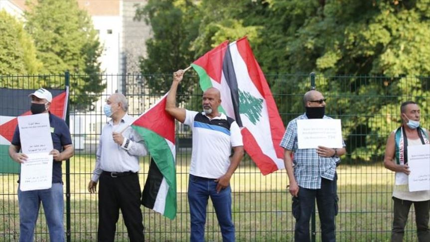 نظم مجموعة من الفلسطينيين مساء الإثنين مظاهرة أمام سفارة الإمارات في العاصمة الألمانية برلين، احتجاجًا على اتفاقية التطبيع الإماراتي-الإسرائيلي.