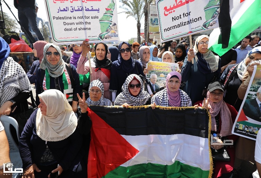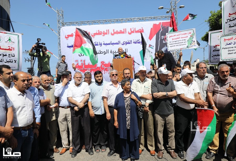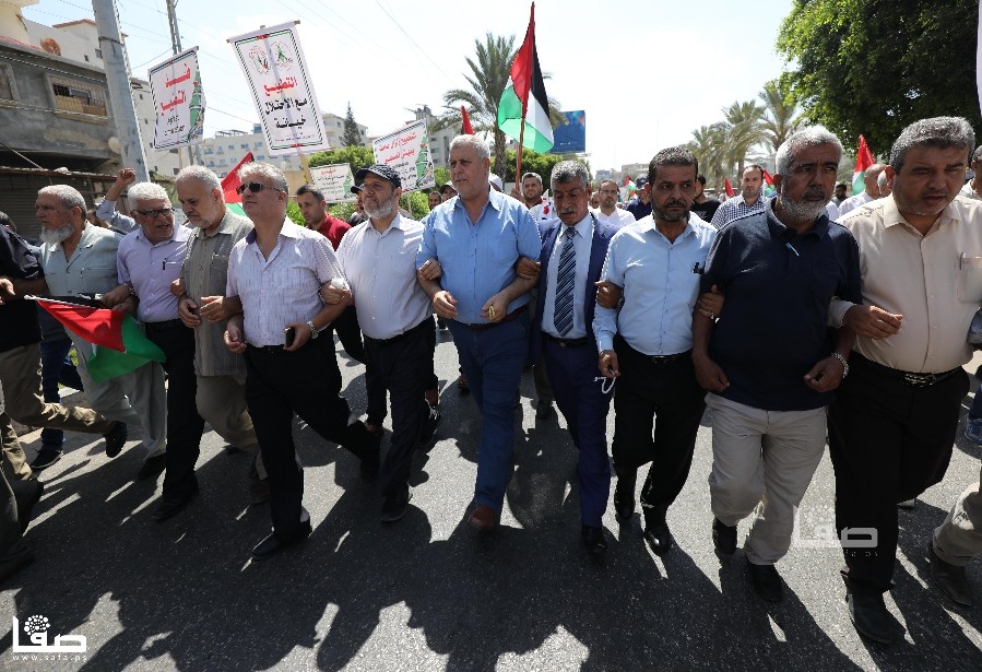 وقال عضو اللجنة المركزية بفتح أحمد حلس إن شعبنا اليوم يقف اليوم موحّدا ضد مخططات التطبيع التي تستهدف قضيتنا، تحت شعار لا للضم ولا لصفقة القرن ولا للتطبيع.