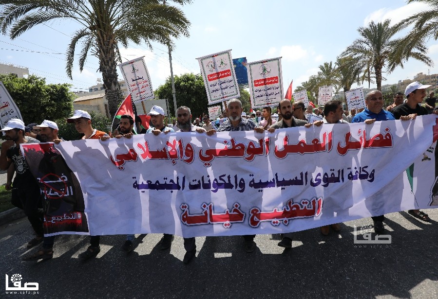 نظّمت القوى الوطنية والإسلامية اليوم الأربعاء مسيرة جماهيرية غاضبة، تنديدًا بالتطبيع الإماراتي الإسرائيلي، والذي أعلنته واشنطن الخميس الماضي.