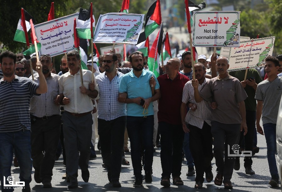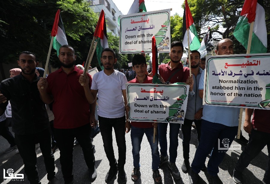 واحتشدت جماهير غفيرة من أبناء شعبنا من مختلف القوى والفصائل ومكونات المجتمع في مسيرة انطلقت من مقر وكالة الغوث الدولية "أونروا" صوب دوّار أنصار غرب مدينة غزة، حاملين لافتات منددة باتفاق التطبيع وأخرى تدعو الإمارات للتراجع عن ذلك.
