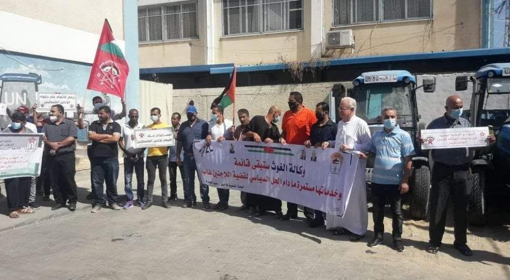 شارك لاجئون فلسطينيون غاضبون في مخيم النصيرات للاجئين وسط قطاع غزة في وقفة احتجاجية أمام مقر وكالة الغوث وتشغيل اللاجئين الفلسطينيين (أونروا)، رفضاً لتقليصاتها وغياب خطة طوارئ صحية مع تفشي جائحة كورونا.