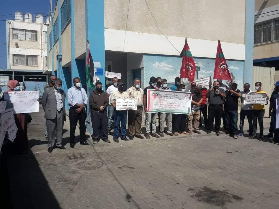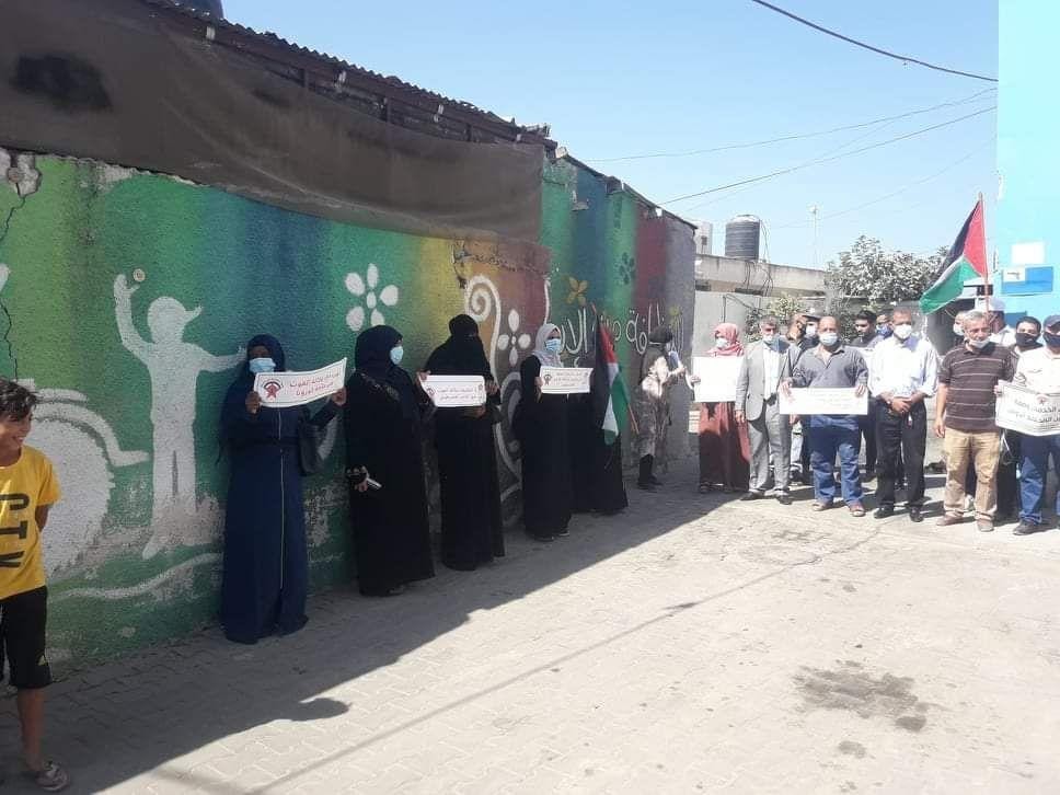 ودعت لهذه الوقفة الاحتجاجية دائرة اللاجئين ووكالة الغوث بالجبهة الديمقراطية لتحرير فلسطين وكتلة الوحدة العمالية بالنصيرات.
