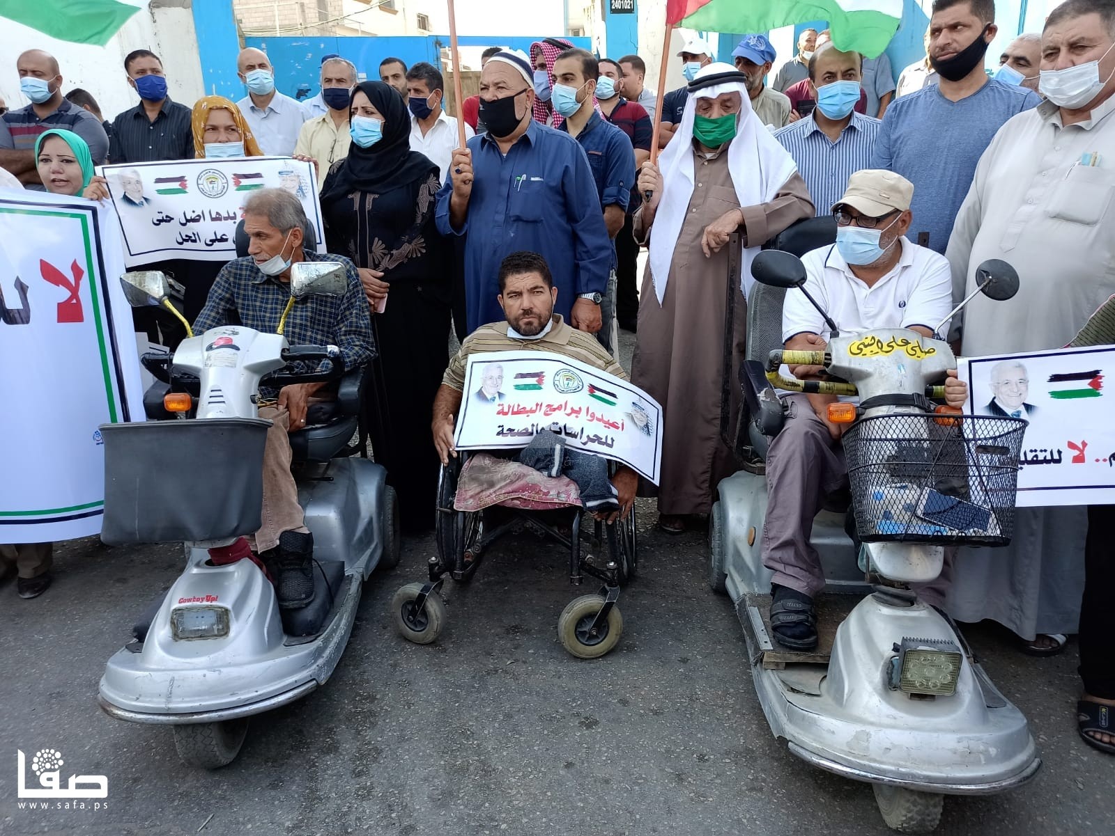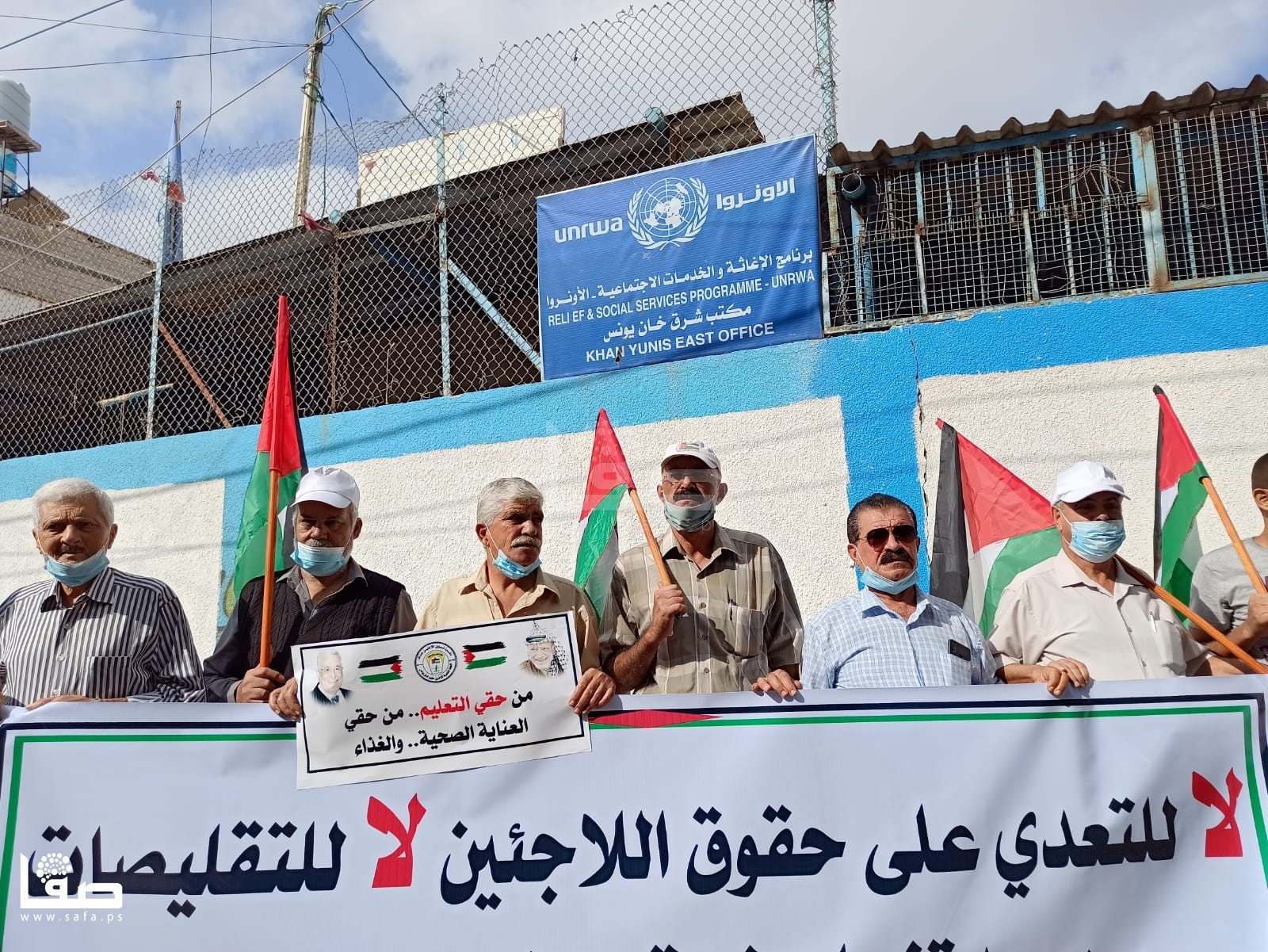 نظمت اللجنة الشعبية للاجئين بمنظمة التحرير، وفصائل العمل الوطني والإسلامي، صباح الأحد، أمام مقر مكتب صحة البيئة التابع "لأونروا" بمحافظة خانيونس جنوبي قطاع غزة، وقفة احتجاجية لمطالبة الأخيرة بالإيفاء بالتزاماتها تجاه اللاجئين الفلسطينيين.
