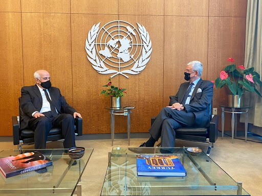 بحث مندوب فلسطين الدائم لدى الأمم المتحدة السفير رياض منصور، مع رئيس الجمعية العامة للأمم المتحدة فولكان بوزكر، آخر التطورات السياسية.