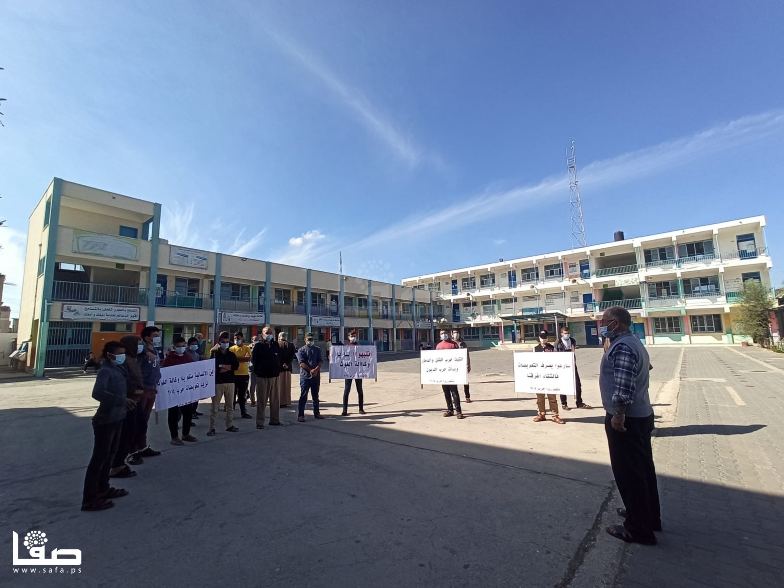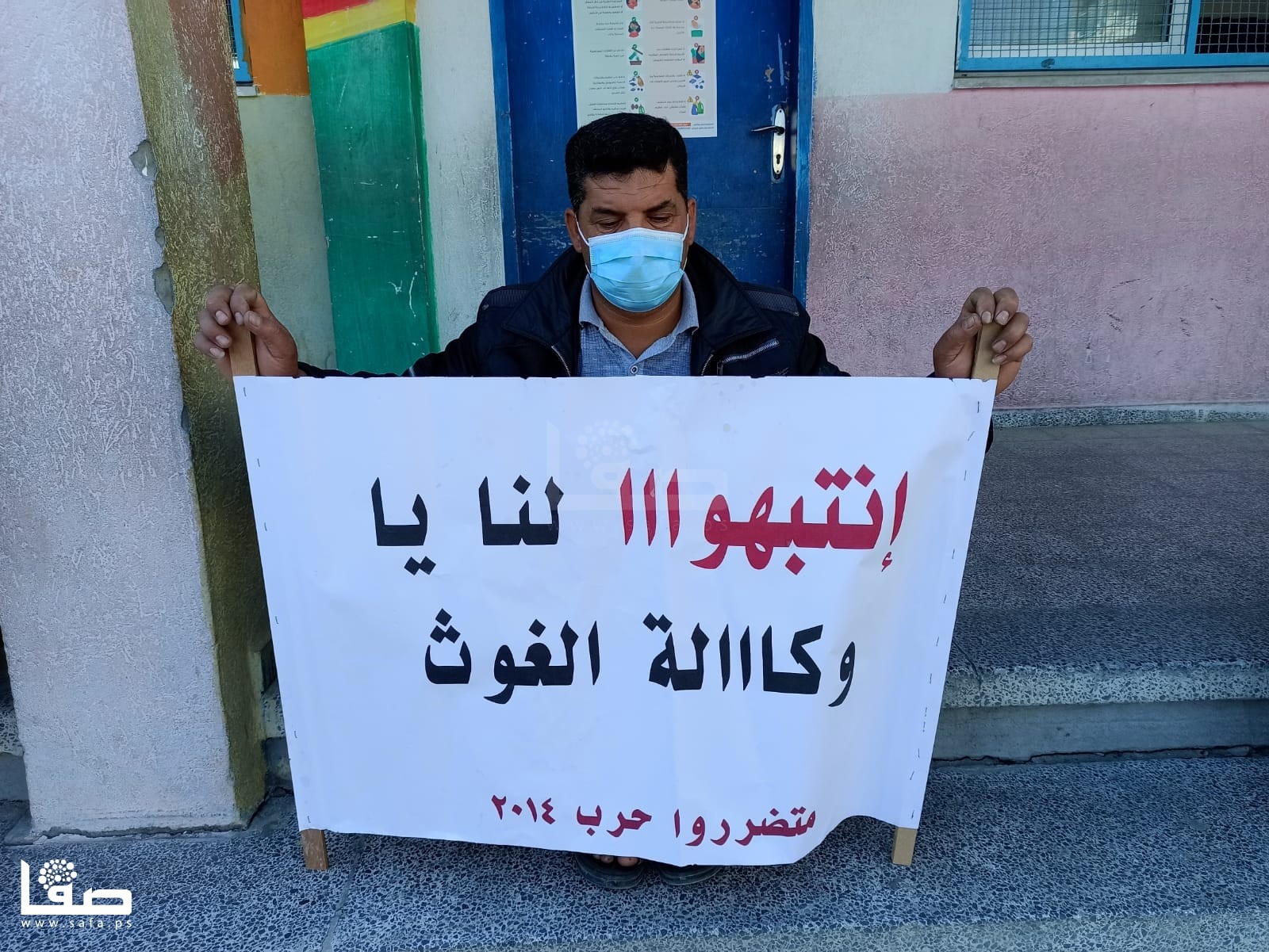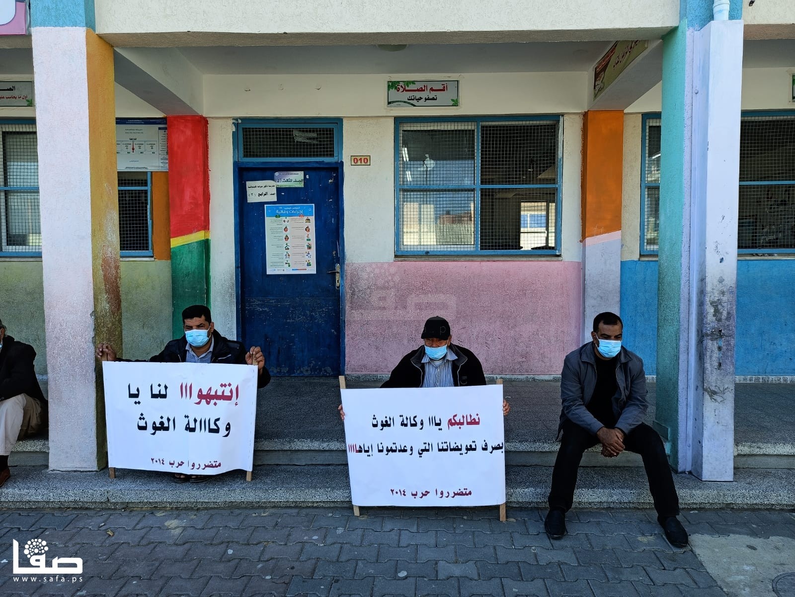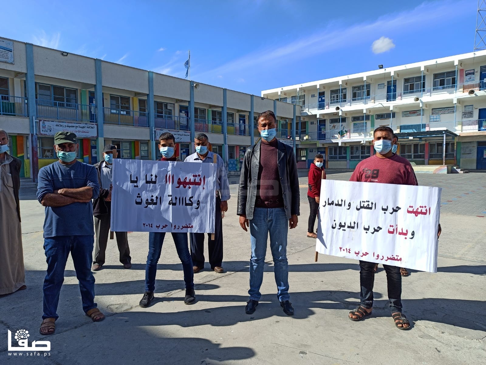 متضررو عدوان 2014 في خزاعة يعتصمون داخل مدرسة لأونروا