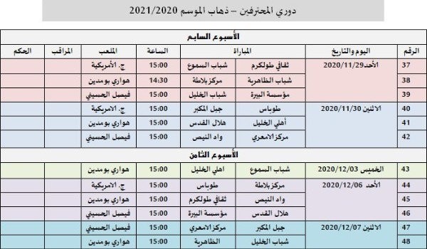 قرر الاتحاد الفلسطيني لكرة القدم في الضفة الغربية المحتلة الإثنين إجراء تعديلات على جدول مباريات الجولتين السابعة والثامنة من دوري المحترفين.
