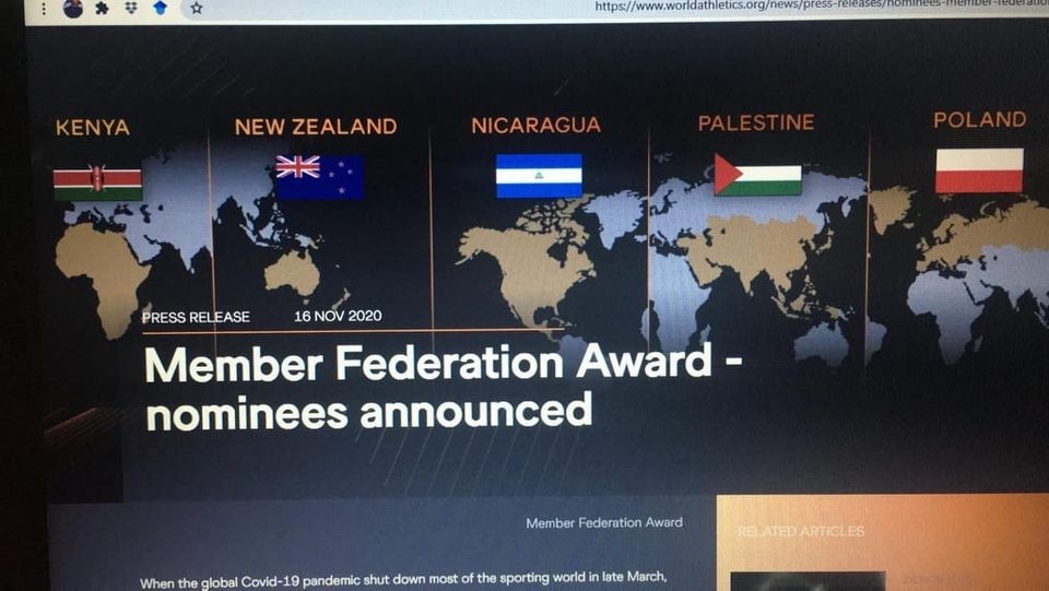 أعلن الاتحاد الدولي لألعاب القوى عن ترشيح نظيره الفلسطيني لجائزة أفضل اتحاد في العالم عن قارة آسيا خلال جائحة "كورونا", التي ستصدر يوم الخامس من شهر ديسمبر المقبل على هامش توزيع الجوائز السنوي.