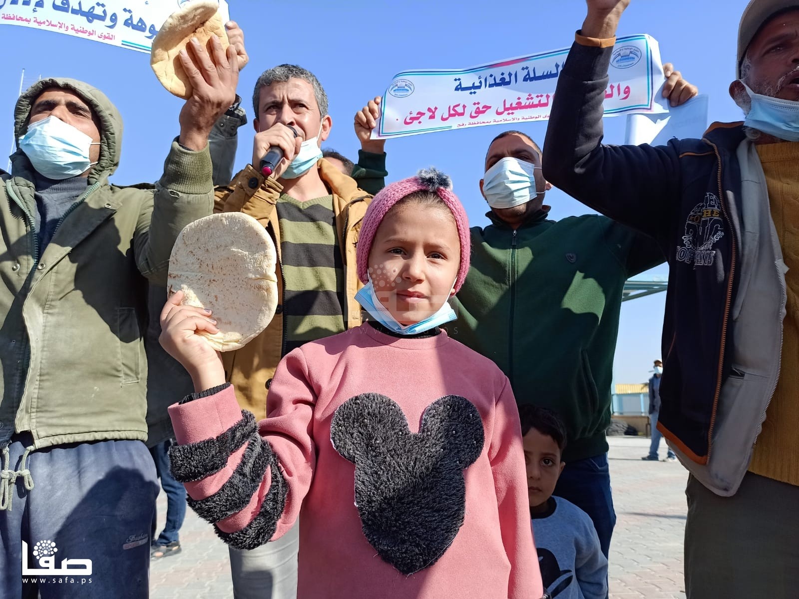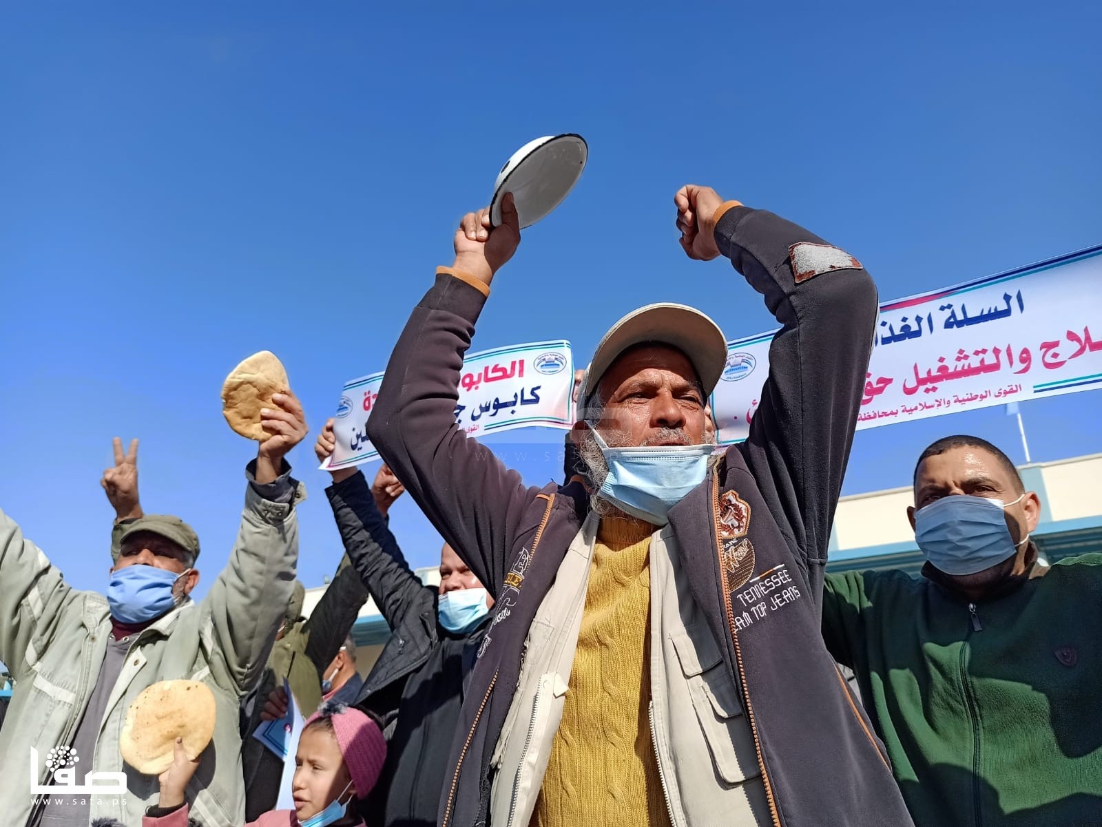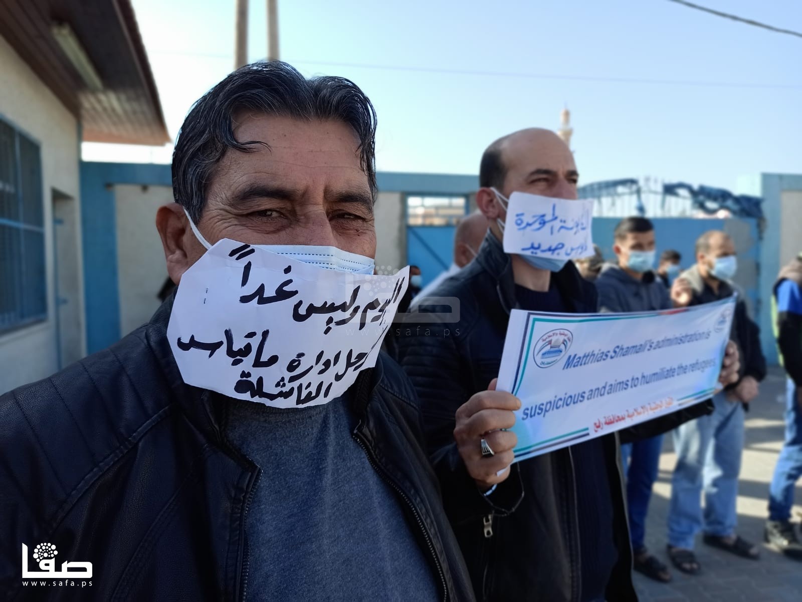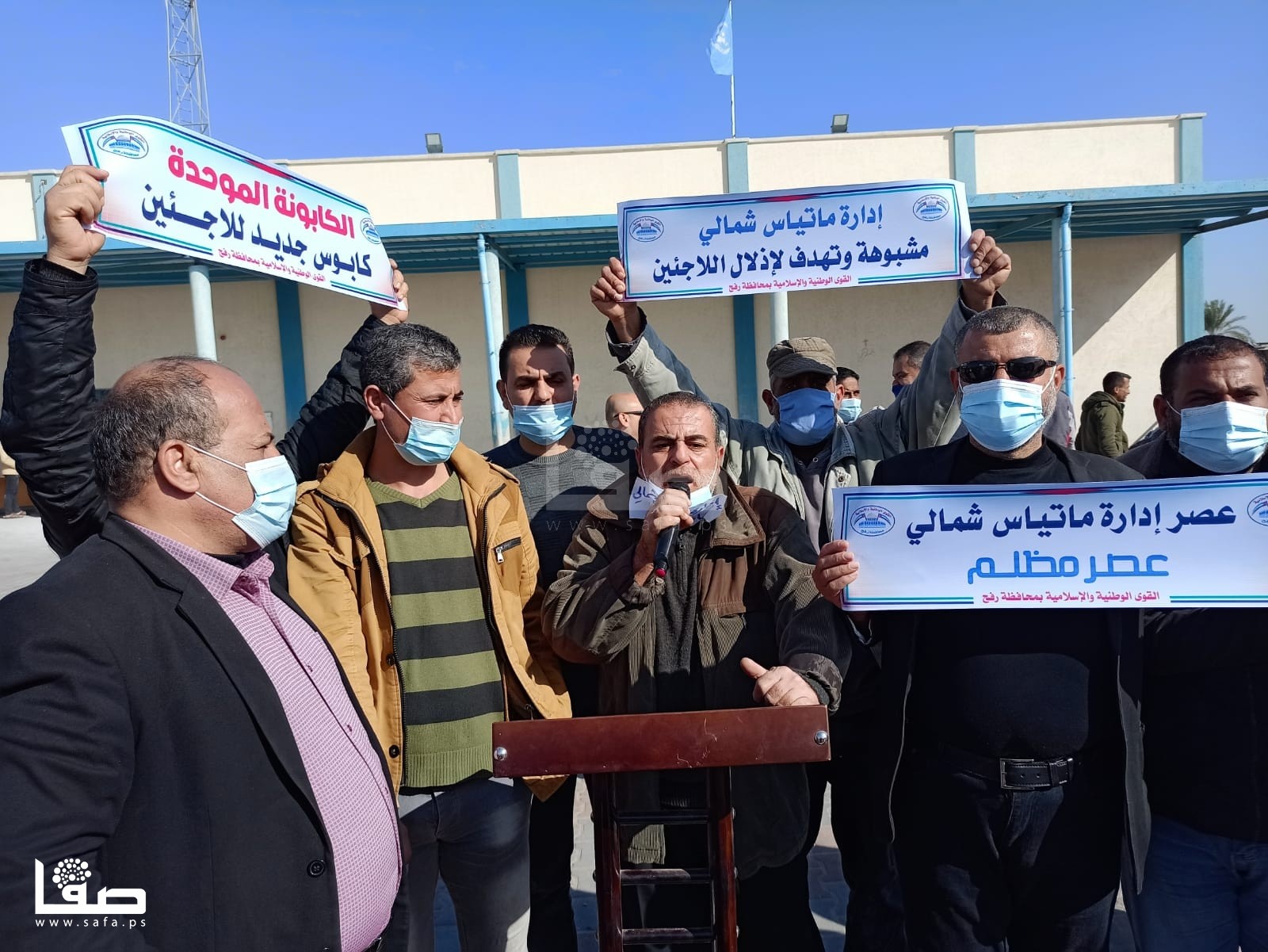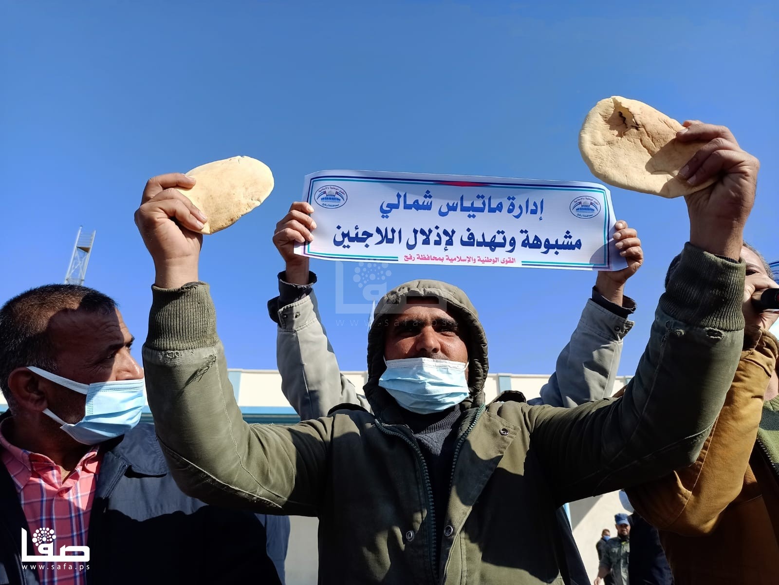ورفع المشاركون، أرغفة خبز، وصحون فارغة، ولافتات كُتب عليها: "السلة الغذائية والعلاج والتشغيل حق لكل لاجئ، الكابونة الموحدة كابوس جديد للاجئين، إدارة ماتياس شمالي مشبوهة تهدف لإذلال اللاجئين، كفى استهتار بحقوق وكرامة واحتياجات اللاجئين". وفق تعبيرهم.