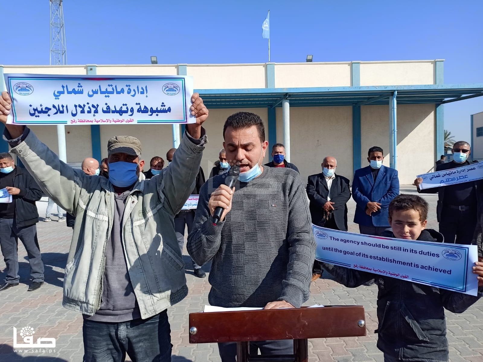 القوى الوطنية والإسلامية في محافظة رفح جنوبي قطاع غزة يوم الأربعاء، وقفةً داخل مقر سنتر تموين المحافظة التابعة لوكالة الأمم المتحدة لغوث وتشغيل اللاجئين "أونروا"؛ رفضًا لتقليصات خدماتها مؤخرًا، وإجراءات تقشفية ضد الموظفين والمُتعاقدين.