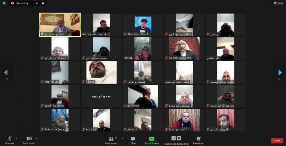 عقدت عشيرة أبو عمرة لقاءً لمجموعة كبيرة من أبنائها المتواجدين في بلدان العالم المختلفة، لتناقل الخبرات والنصائح حول وباء كورونا.
