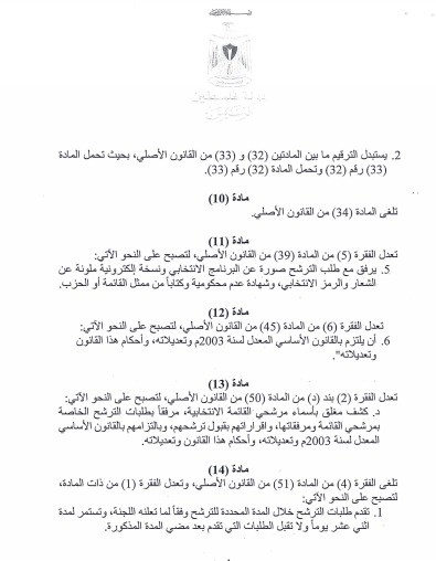 قالت لجنة الانتخابات المركزية يوم الأربعاء إنها تسلمت قرار بقانون رقم ( ) لسنة 2021 بشأن تعديل قرار بقانون رقم (1) لسنة 2007 بشأن الانتخابات العامة.