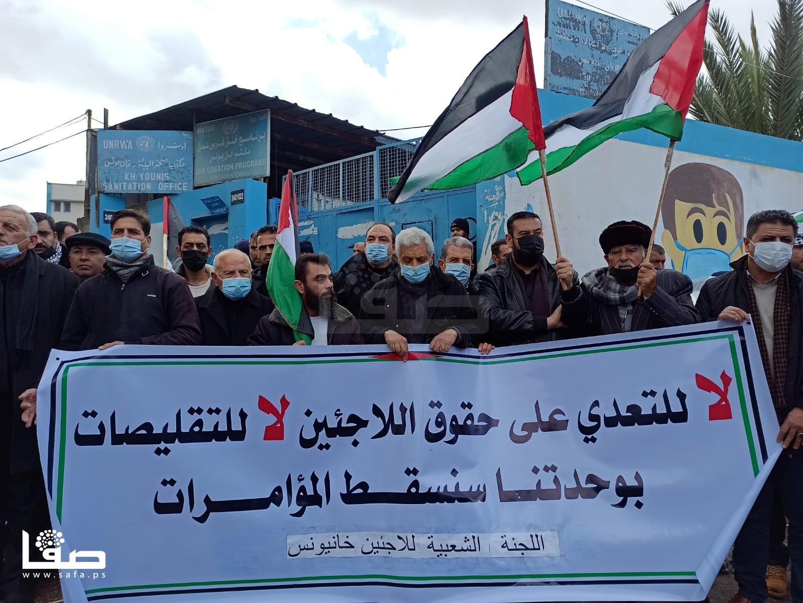 نظمت اللجنة الشعبية للاجئين الفلسطينيين في محافظة خانيونس جنوبي قطاع غزة يوم الأربعاء، وقفة منددة بتقليصات وكالة الأمم المتحدة لغوث وتشغيل اللاجئين الفلسطينيين "أونروا".