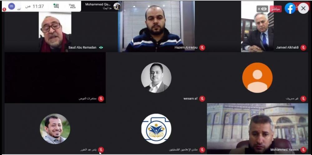 جاء ذلك خلال ندوة إلكترونية بعنوان "الإعلام والانتخابات.. مسؤولية وضوابط" نظمها منتدى الإعلاميين الفلسطينيين اليوم الأحد عبر تطبيق "جوجل مييت".