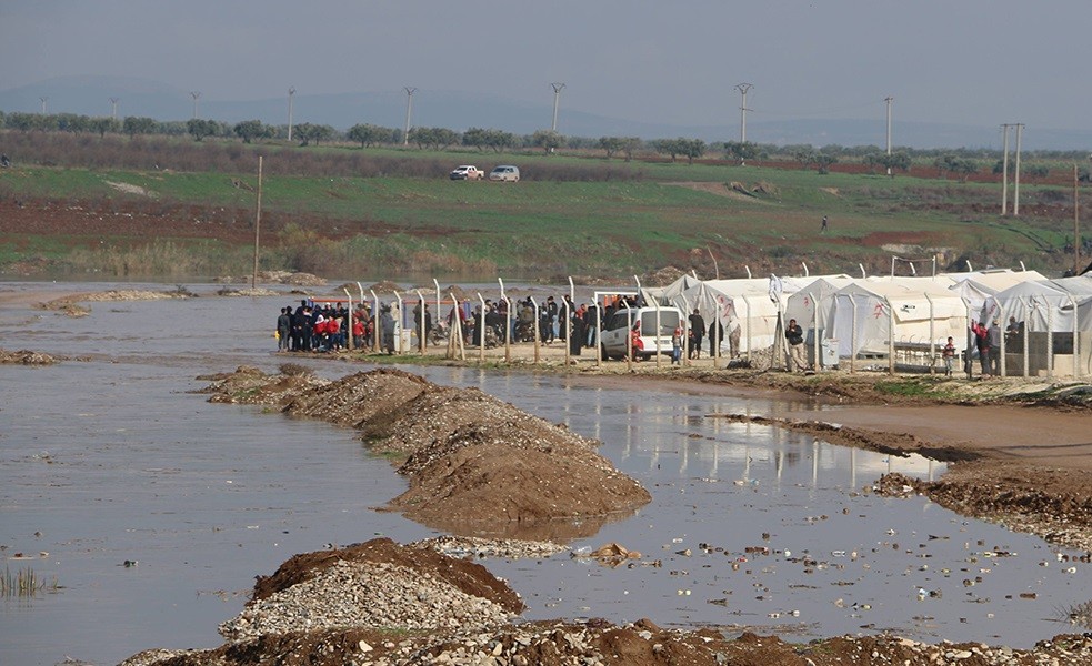 اجتاح فيضان نهر مدينة عفرين بريف حلب الشمالي المنطقة التي يتمركز فيها مخيمي دير بلوط والمحمدية بسورية، مهدداً الخيام التي تضم مئات العائلات الفلسطينية والسورية بالغرق والاقتلاع من مكانها.