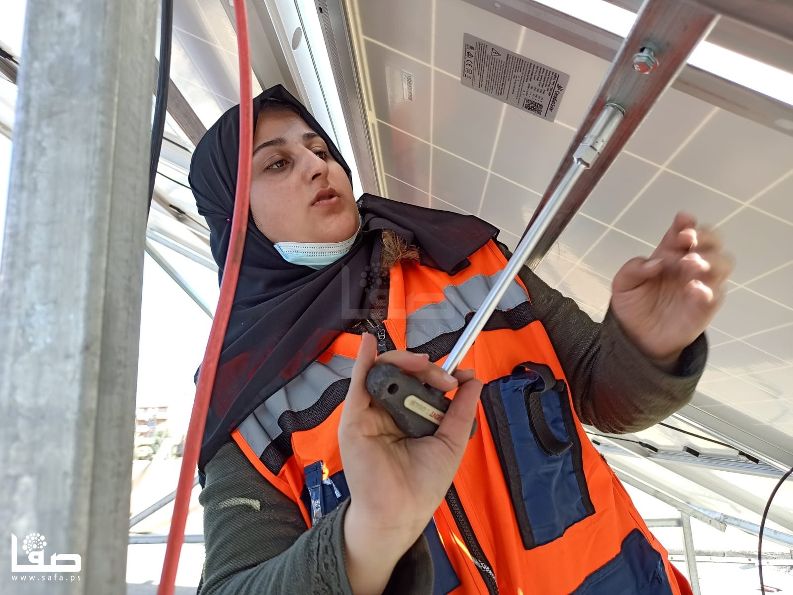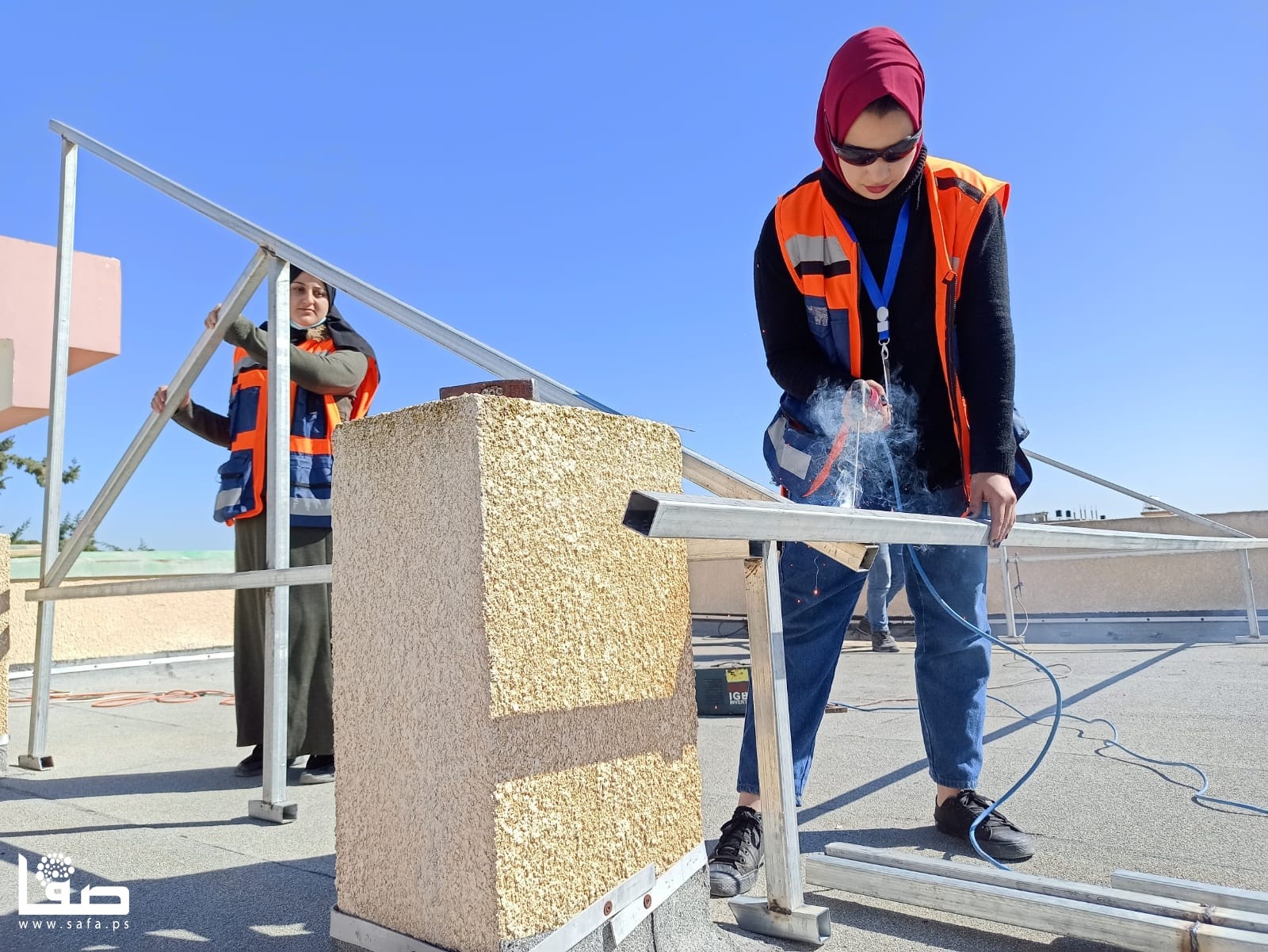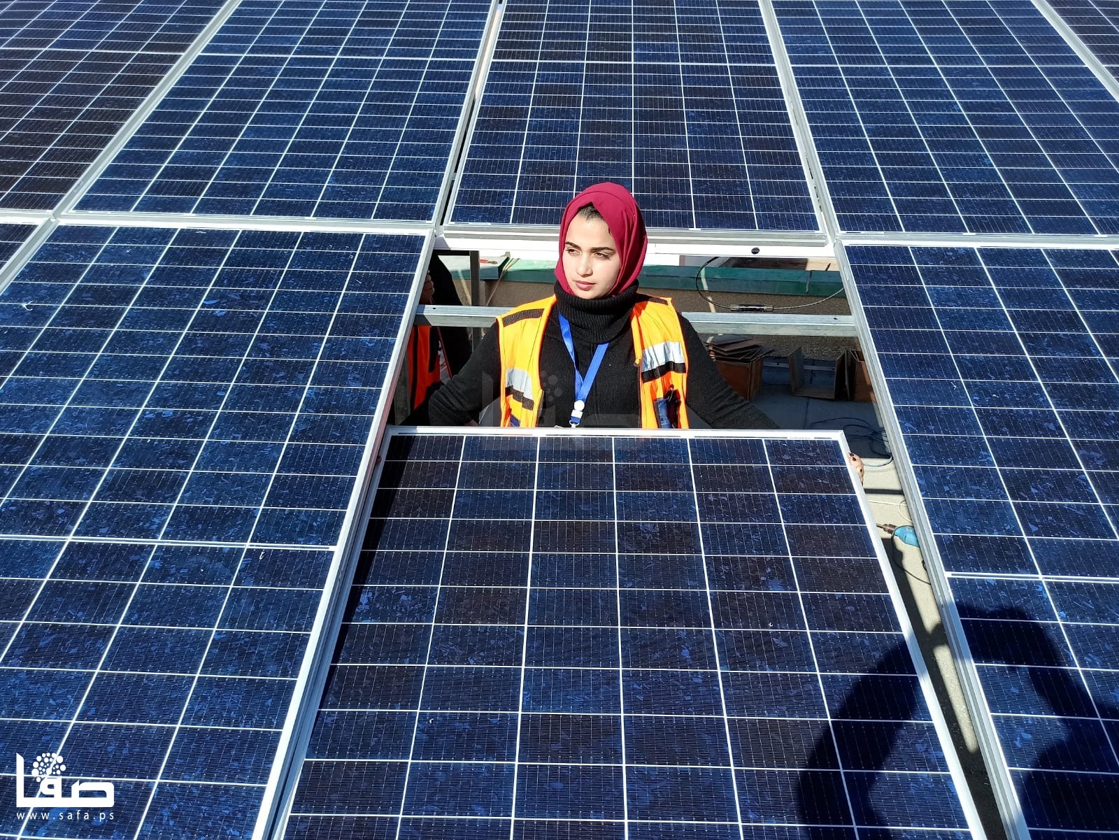 وعلى مدار ساعات العمل تحت أشعة الشمس، شاركت الشابات فريق عمل من الشباب المختصين في مجال الطاقة الشمسية في تجهيز 12 خلية شمية، من حيث حمل الألواح وتركيبها وتمديد الكوابل، وتجميع الخطوط "طبلون".