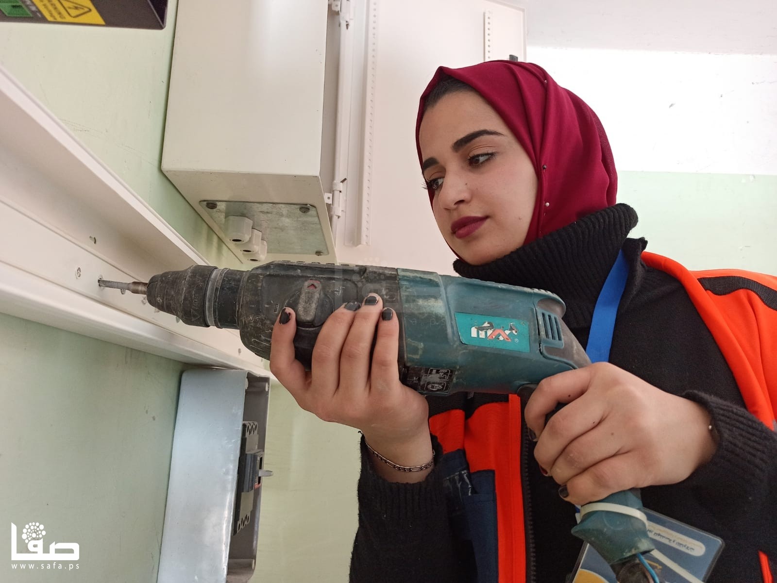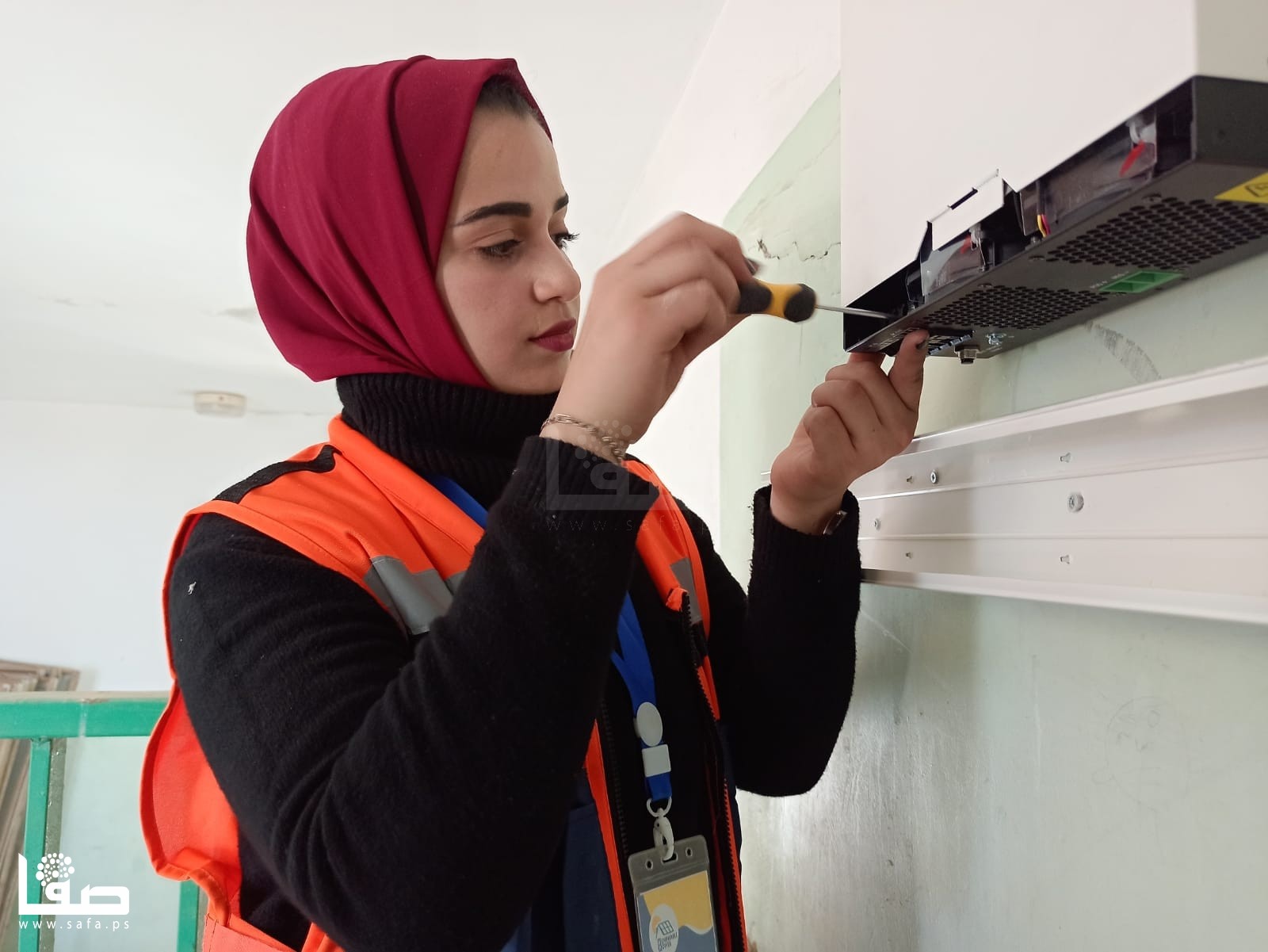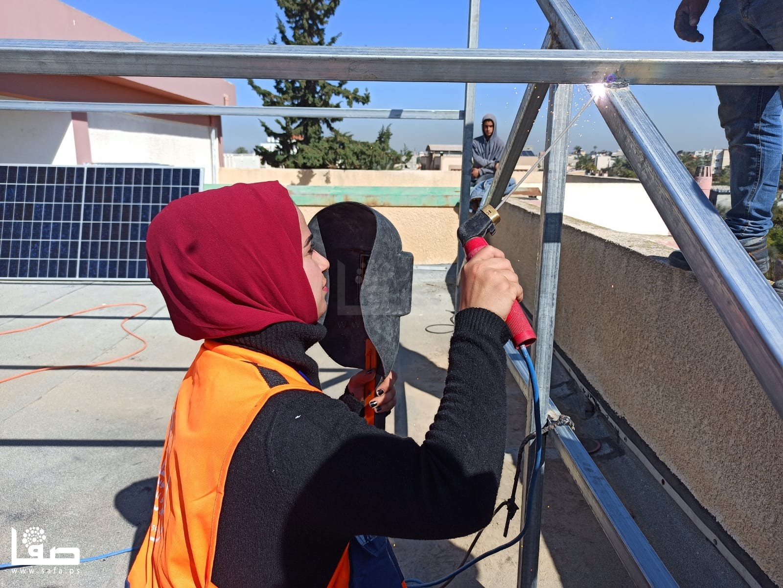 وتضيف "اليوم نعمل بجانب الشباب، ونشارك في معظم الأعمال، سواء اللحام أو التمديدات وتجهيز الشبكة، وحمل البطاريات، وألواح الطاقة (الخلايا)، والقضبان الحديدية؛ نكمل بعضنا، ونشعر بسعادة، لأننا نحب التخصص والعمل فيه".