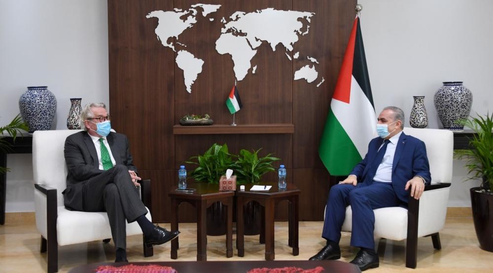 بحث رئيس الوزراء محمد اشتية مع المنسق الخاص لعملية السلام في الشرق الأوسط "تور وينسلاند"، آخر التطورات السياسية والاستعدادات لإجراء الانتخابات التشريعية.