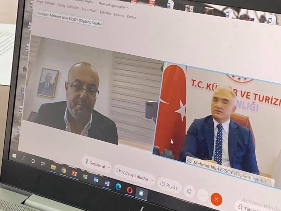اجتمع وزير الثقافة الفلسطيني عاطف أبو سيف بنظيره التركي محمد ارصوي عبر العالم الافتراضي بحضور وكيل الوزارة جاد غزاوي ونظيره التركي، وتم بحث جملة من المشاريع التعاونية لخدمة القطاع الثقافي في فلسطين.