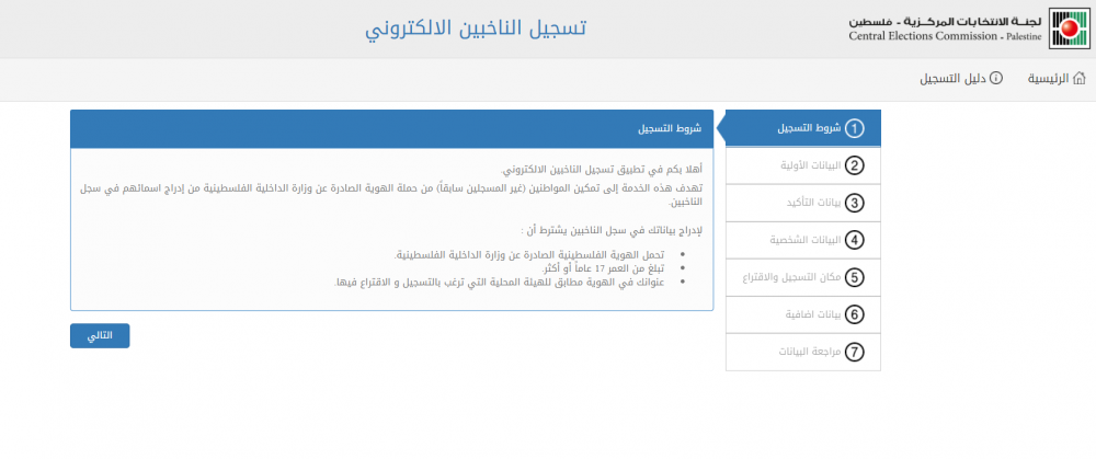 وبإمكان أي مواطن أو مواطنة بلغ 17 عاماً فأكثر ويحمل هوية فلسطينية ولم يسجل من قبل، أن يبادر إلى تسجيل نفسه الكترونياً قبل نهاية فترة التسجيل مساء 16 فبراير الجاري.