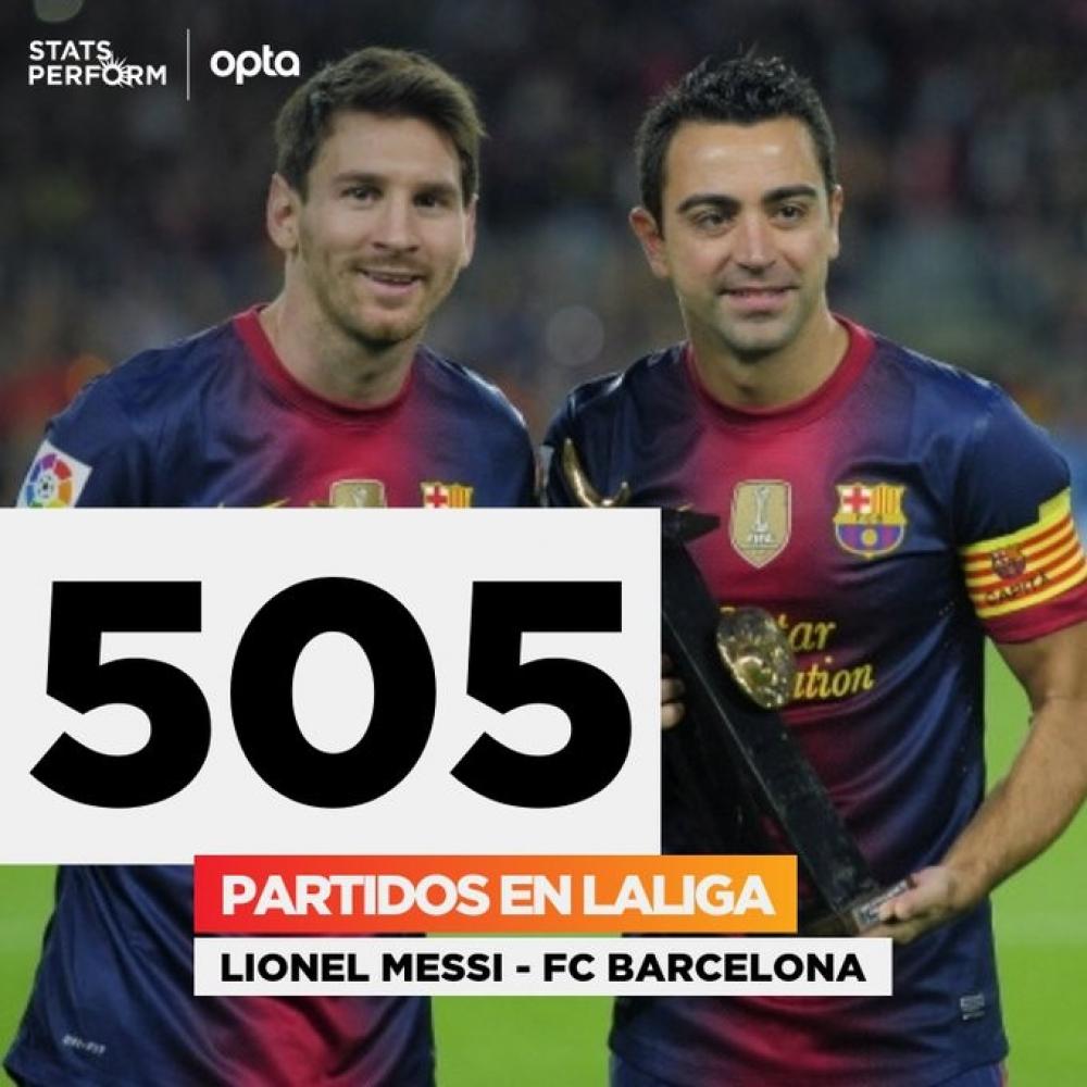 وبحسب شبكة "أوبتا" للإحصائيات فإن ميسي عادل رقم تشافي كأكثر لاعب خاض مباريات بقميص برشلونة في "الليجا" برصيد 505 مواجهات.