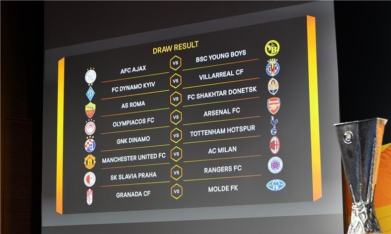 مانشستر يونايتد الإنجليزي مع ميلان الإيطالي، ويلعب أياكس أمستردام الهولندي مع يانج بويز السويسري، ويتقابل دينامو كييف الأوكراني مع فياريال الإسباني، ويواجه روما الإيطالي نظيره شاختار دونيتسك الأوكراني، كما يلعب أولمبياكوس اليوناني مع أرسنال الإنجليزي، ودينامو زغرب الكرواتي مع توتنهام هوتسبير الإنجليزي، وسلافيا براج التشيكي مع رينجرز الإسكتلندي، وغرناطة الإسباني مع مولده النرويجي.