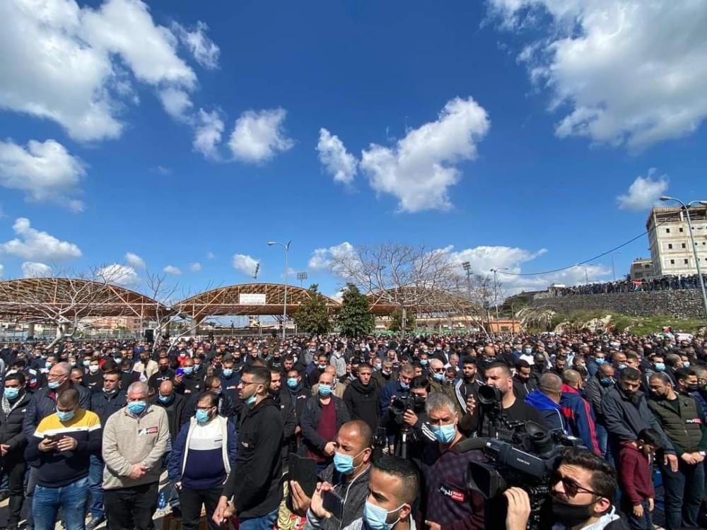 ورفع المشاركون في التظاهرة التي خرجت عقب صلاة الجمعة، علم فلسطين والرايات السوداء، ورددوا هتافات منددة بالجريمة وتواطؤ الشرطة الإسرائيلية في محاربة العنف والجريمة بالمجتمع العربي.