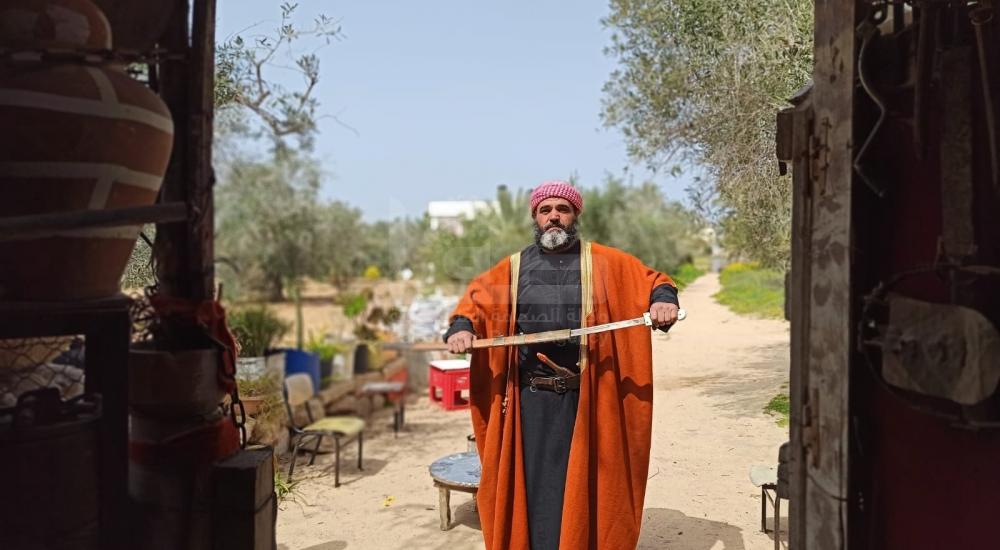 يشير المُسن بيده على ميدان حديدي صدأ "هذا ميزان (قب) قديم ملكية أبي عمره أكثر من 60 عامًا وإطار عربة (يبونكا) التي كانت تستخدم في البناء؛ مضيفًا: "معظم الأغراض (المقتنيات) هنا ملكي أنا وأبي وجدي، من مهنتي التجارة والفلاحة، بجانب قطع أثرية نجدها أثناء حراثة الأرض، تعود معظمها للعهد الروماني، حسب خبرتنا".