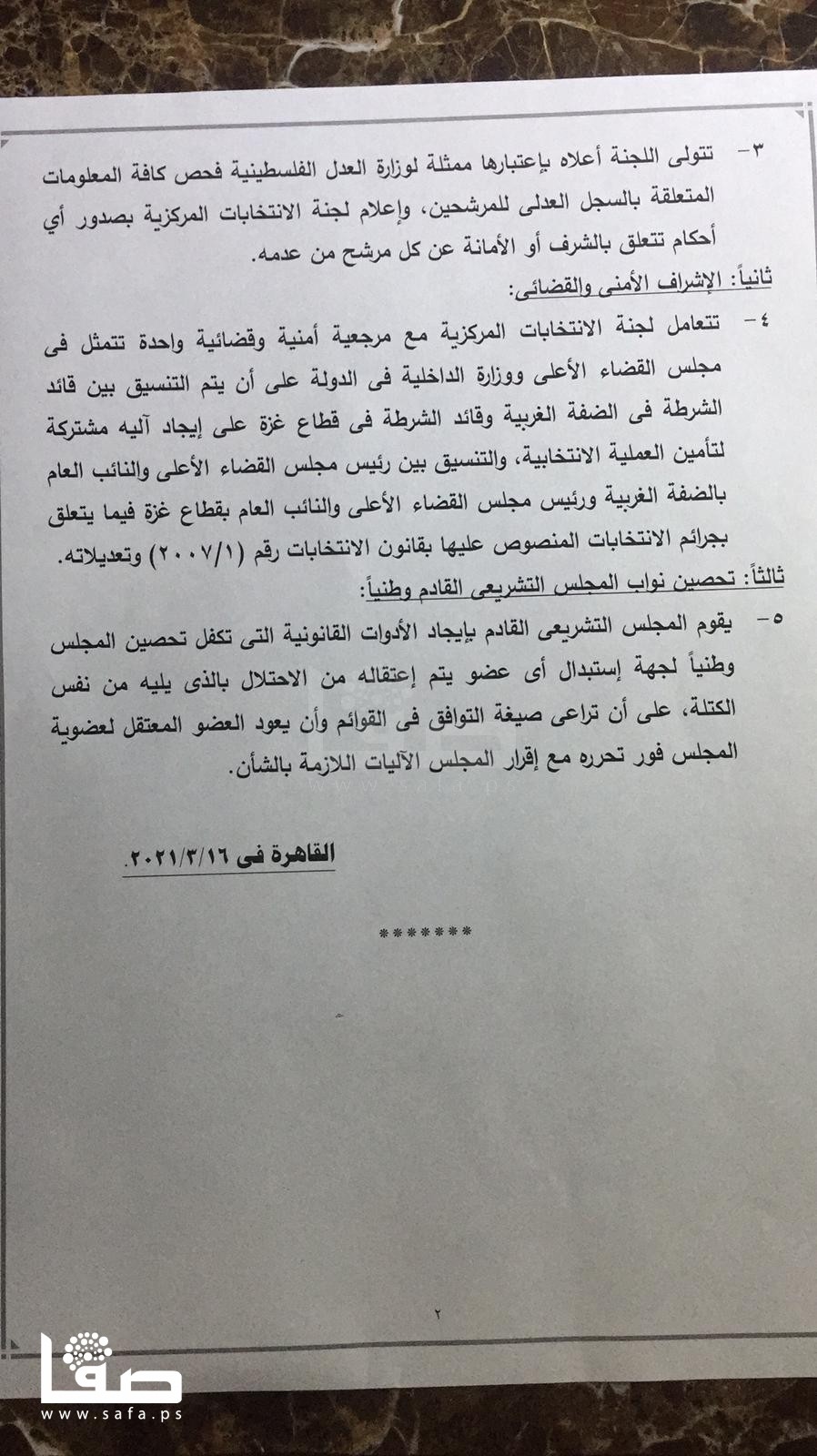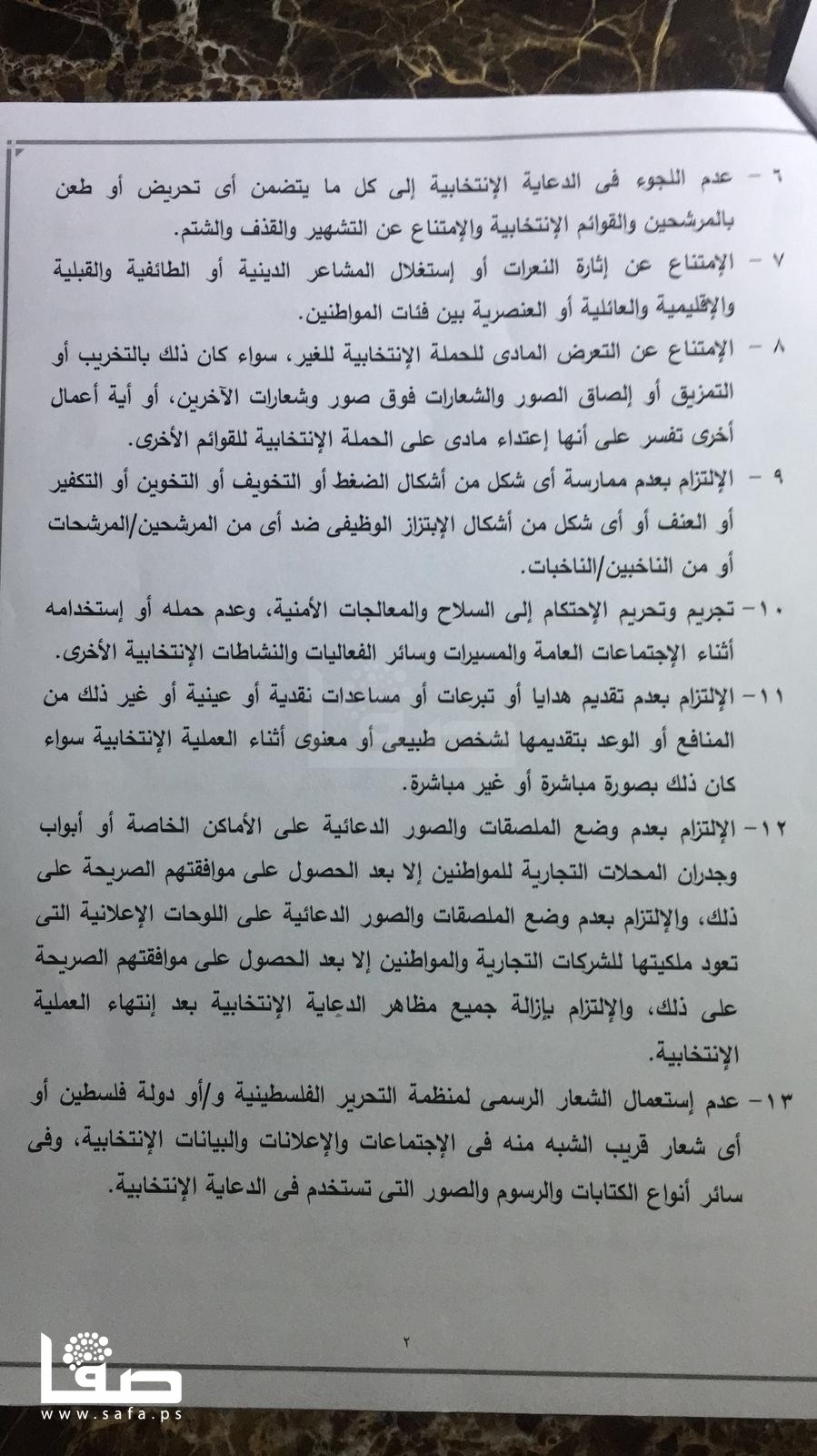 2-احترام دور الشرطة الفلسطينية بتأمين العملية الانتخابية بجميع مراحلها والالتزام بقرارتها.