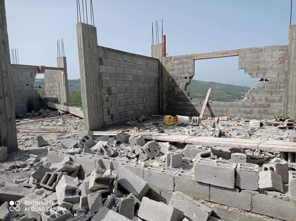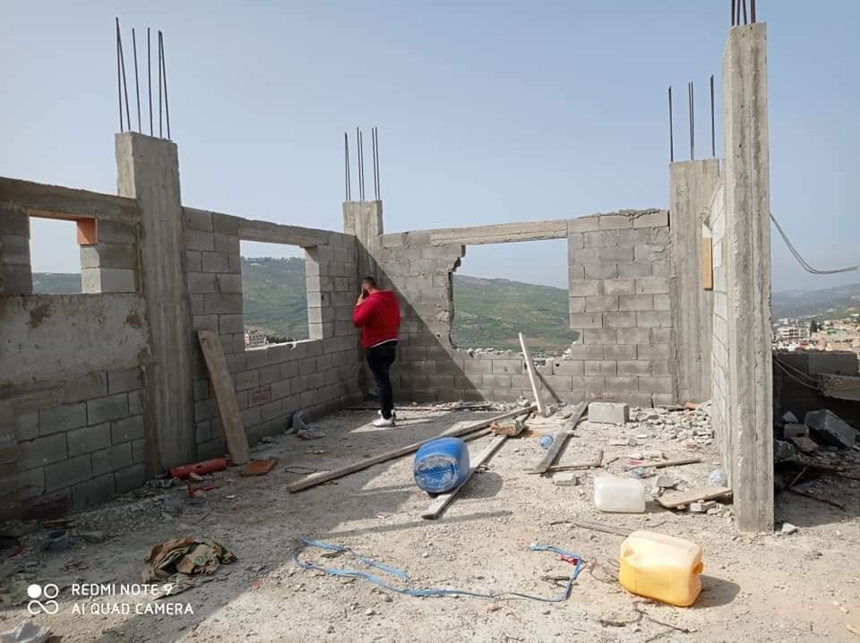 يتكئ المواطن منتصر منصور على عمود خرساني يتأمل بألمٍ قطع الطوب المتكسرة والمتناثرة على أرضية بيته الذي لم يكتمل بعد، نتيجة اعتداءات المستوطنين المتكررة والهادفة لمنعه من إتمام بنائه.
