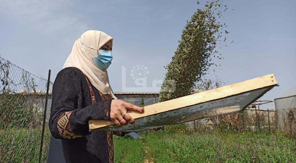 وبدأت أماني، التي تقطن بلدة عبسان الجديدة الحدودية، في مشروع زراعة وتجفيف النباتات العطرية وتسويقها محليًا منذ نحو عامين، بدعمٍ من مؤسسة "وصال"؛ لتوفير لقمة العيش ومصاريف أبنائها الستة، الذين يدرس بعضهم في الجامعات.