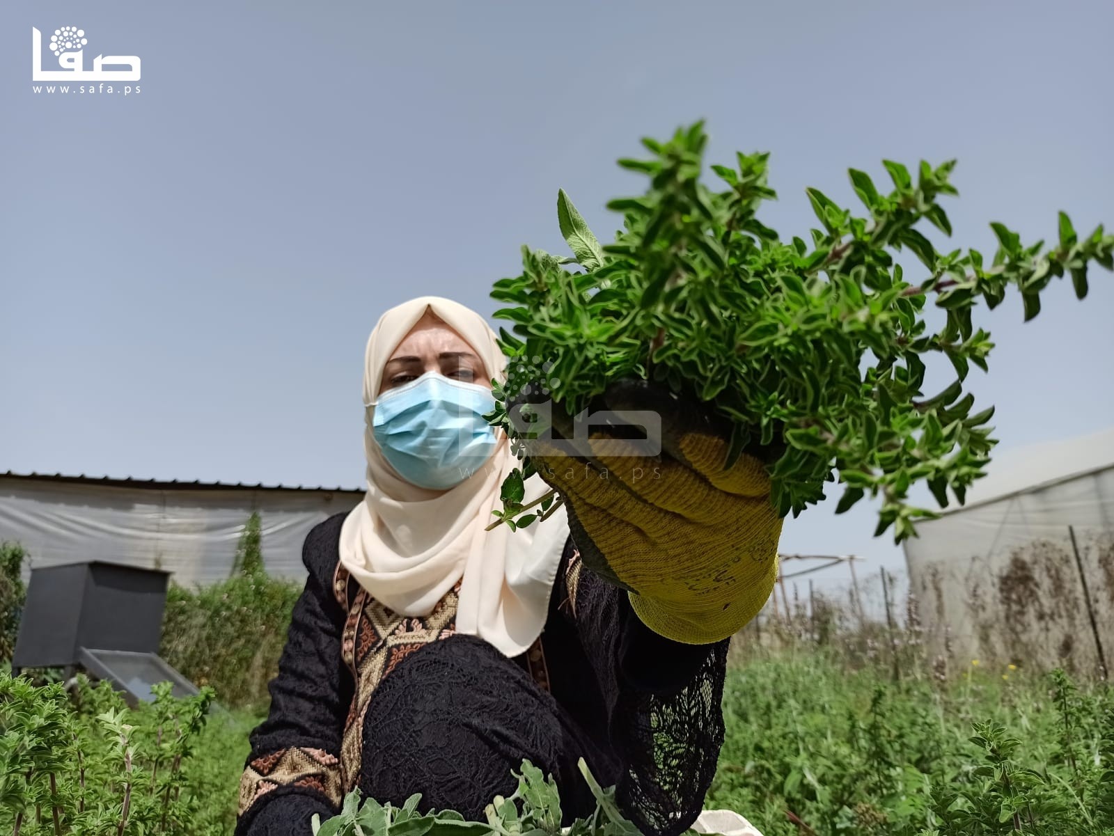 في حقلٍ تبلغ مساحته 400 متر مربع، تنهمك الأم لستة أفراد، أماني أبو لطيفة (36عامًا)، في قطف ثمار لقمة عيشها من بين عدة أصناف من النباتات العطرية، التي باتت مشروعًا يدر دخلاً عليها منذ عدة سنوات.