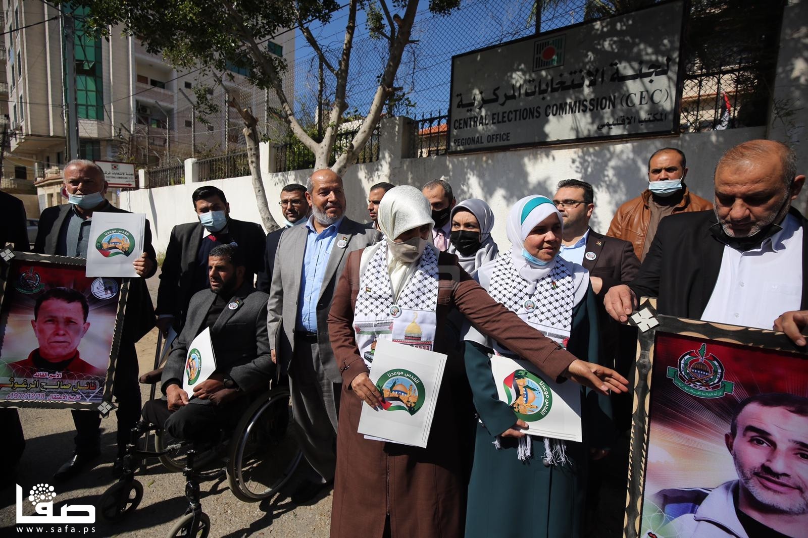 وتقدم القيادي في الحركة خليل الحية بأوراق قائمة حماس لمقر اللجنة في مدينة غزة، في حين تقدم وفد من الحركة في الضفة الغربية المحتلة بالقائمة لمقر اللجنة في البيرة.