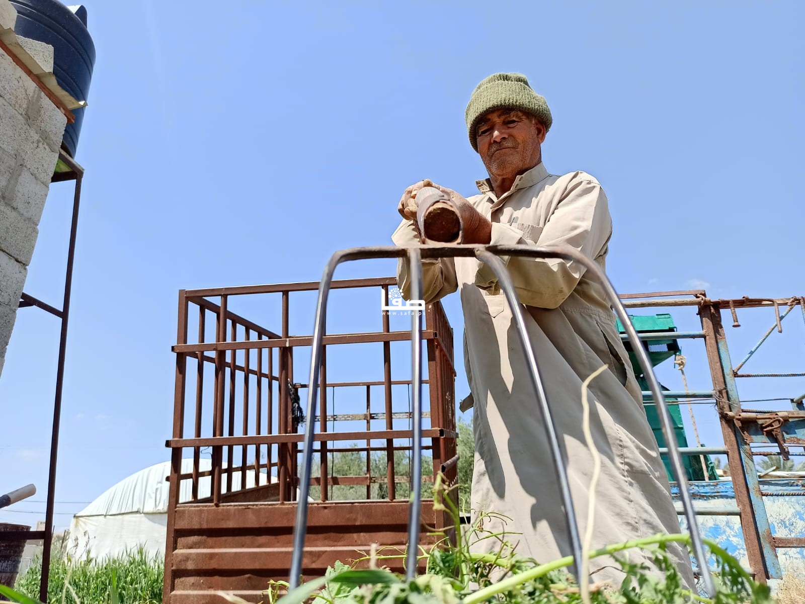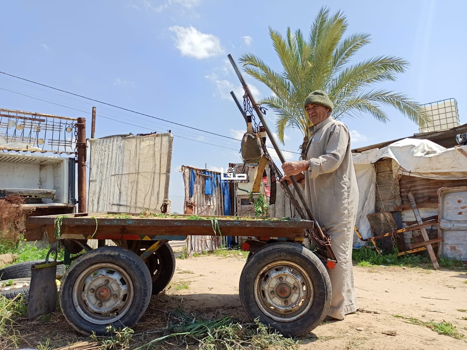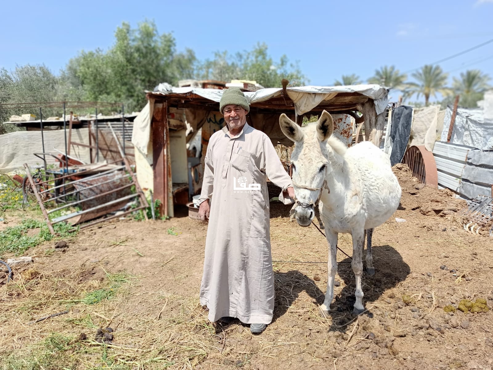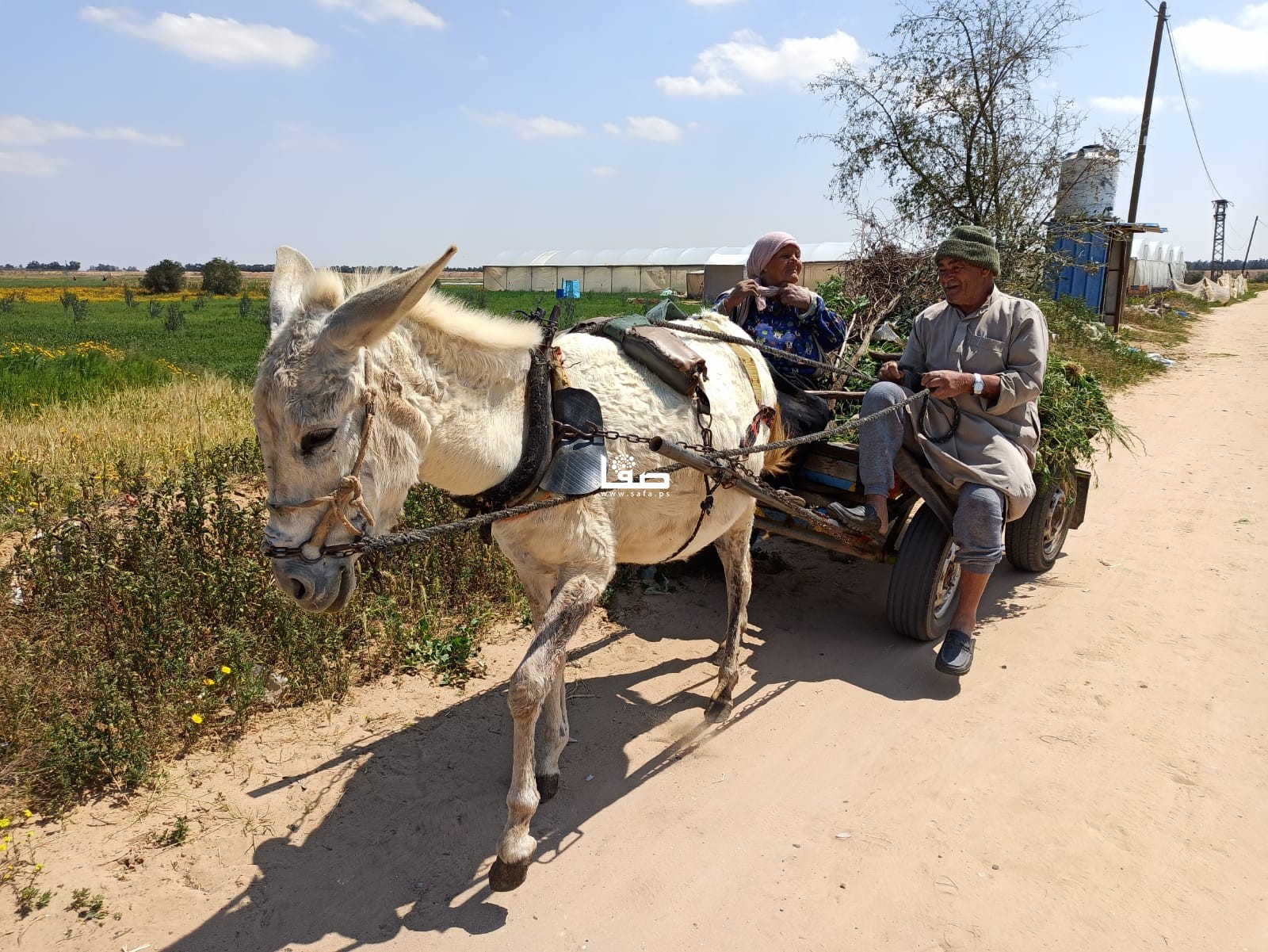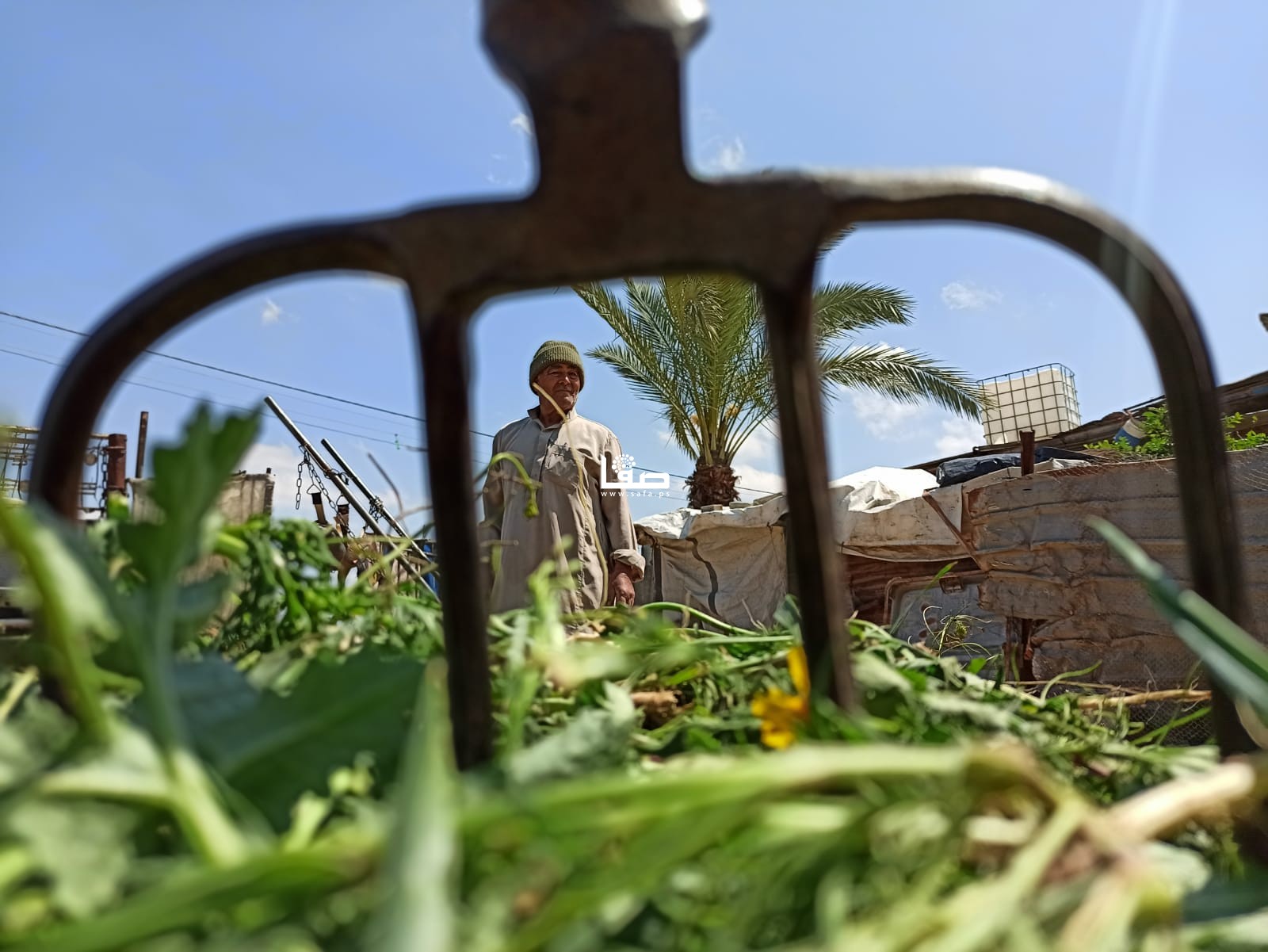 وبتمام الساعة الحادية عشرة صباحًا يغادر المزارع المسنّ أرضه؛ كي لا يتعرض لإطلاق نار من جنود الاحتلال، دأبه كدأب بقية المزارعين في تلك المنطقة، فحمل العشب الضار على ظهر عربته وتوجّه مع زوجته إلى منزلهما القريب؛ ليكمل باقي طقوس يومه في إطعام المواشي، والاعتناء بحديقة منزله.
