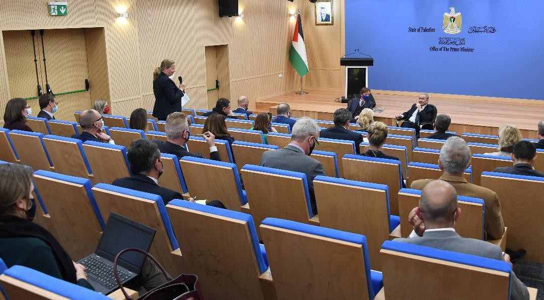 طالب رئيس الوزراء محمد اشتية، بضغط أوروبي لإلزام "إسرائيل" باحترام الاتفاقيات الموقعة معها ومن ضمنها ضمان إجراء الانتخابات في مدينة القدس تصويتاً وترشيحاً.