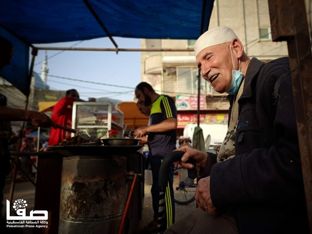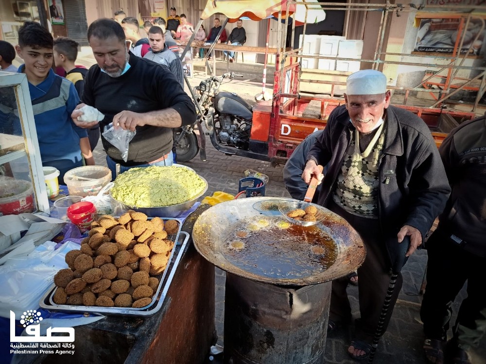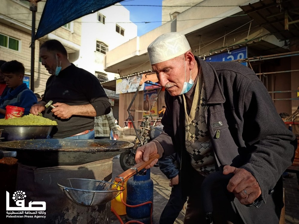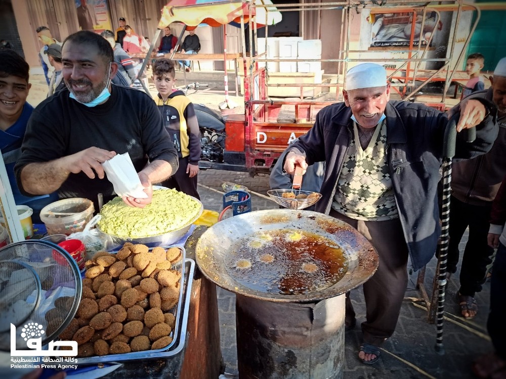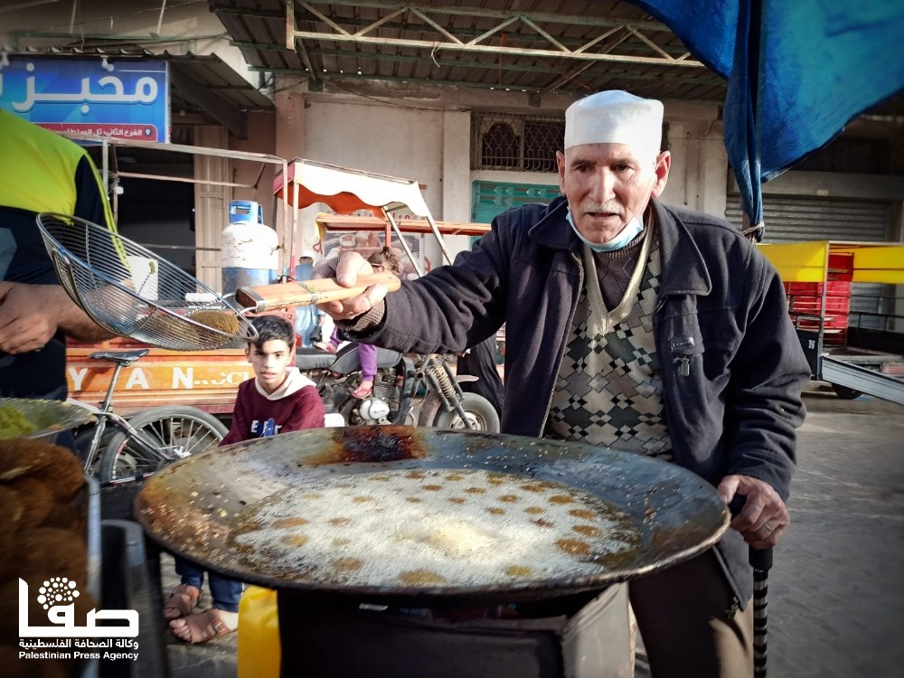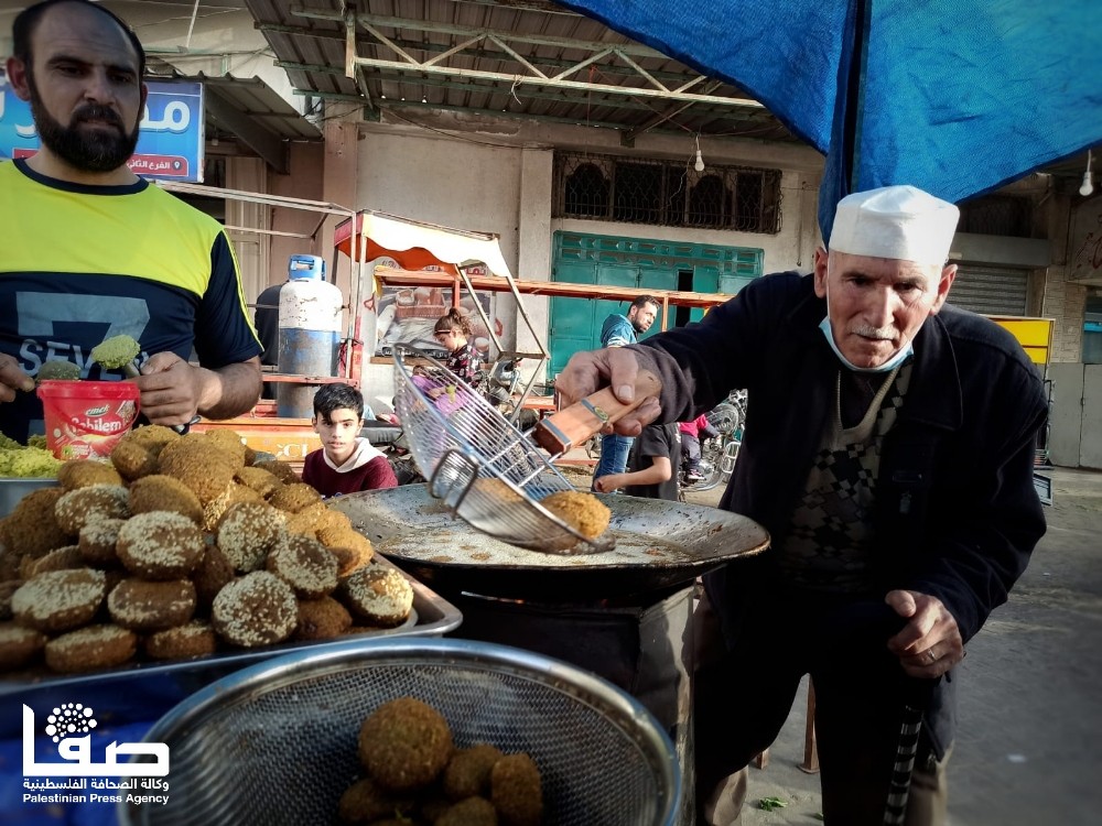 للوهلة الأولى تعتقد أنّ ذلك الرجل الكهل قد جلس لينال قسطًا من الراحة في وقت تزاحم الصائمين المتجوّلين في سوق مدينة رفح جنوبي قطاع غزة، لكن الأمر عكس ذلك تمامًا؛ فالرجل جلس ليمارس مهنة بيع الفلافل وأبناؤه بجواره حول بسطته الرمضانية التي لم يغب عنها منذ أكثر من أربعة عقود.