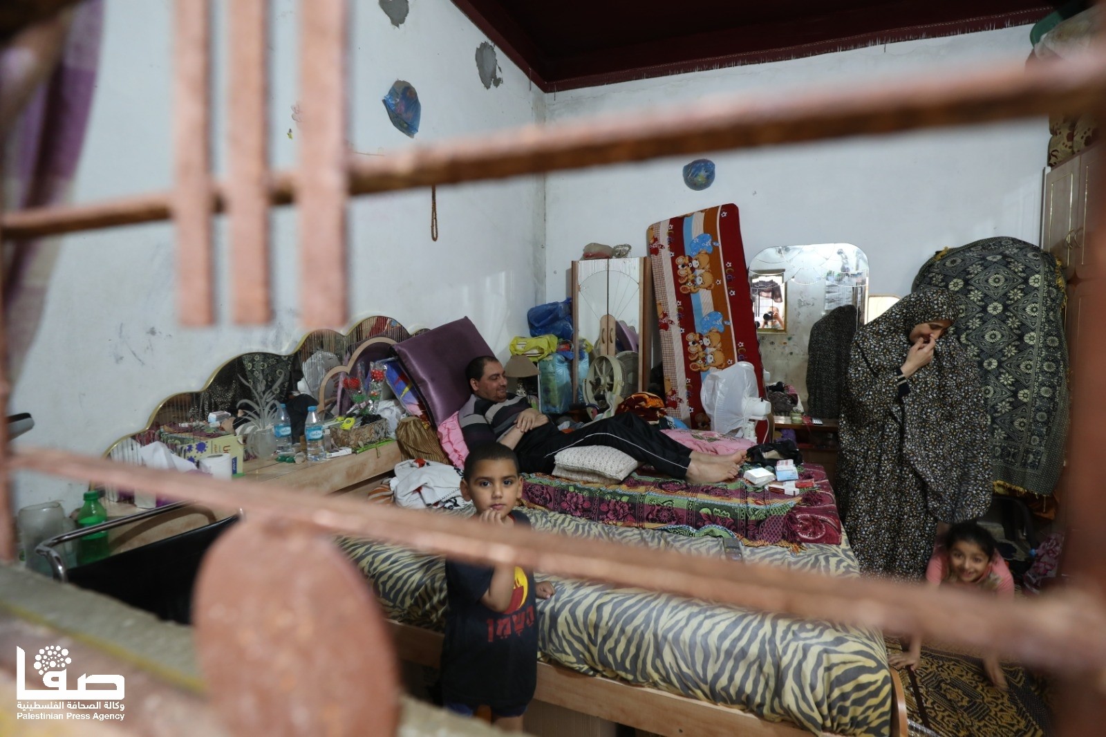 حال أسرة صلاح لم يختلف كثيرًا عن حال أسرة شقيقه أبو ابراهيم الذي يعاني من مرض مزمن، والذي يعيش في غرفة مجاورة مع 8 أشخاص.