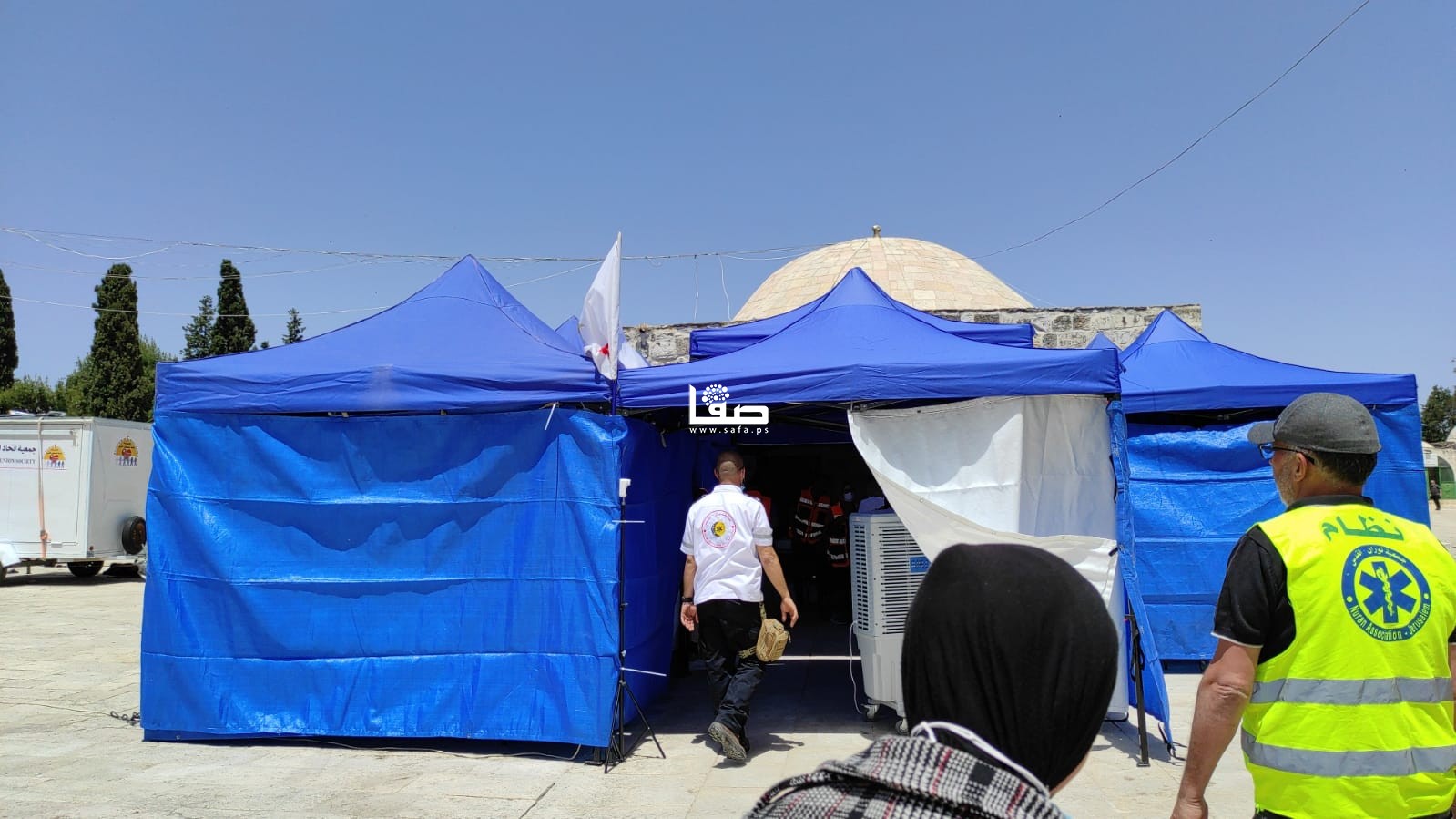 كخلية نحل، تتابع طواقم طبية مختلفة الأوضاع الصحية للصائمين في باحات المسجد الأقصى المبارك، في صلوات أيام الجمعة والتراويح وليلة القدر.