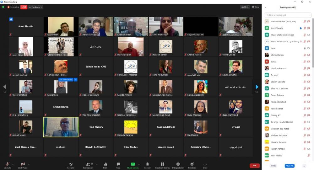 وتحدث في هذه الورشة، التي أدارها خليل شاهين، مدير البرامج في مركز مسارات، كل من: محمود دودين، أستاذ القانون في جامعتي بيرزيت وقطر، وحسن أيوب، رئيس قسم العلوم السياسية في جامعة النجاح الوطنية.