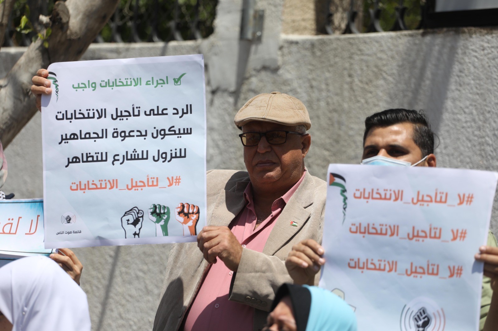 نظمت قوائم انتخابية وفصائل ونشطاء مساء الخميس، تظاهرة وسط مدينة رام الله بالضفة الغربية المحتلة رفضا لتأجيل الانتخابات التشريعية.