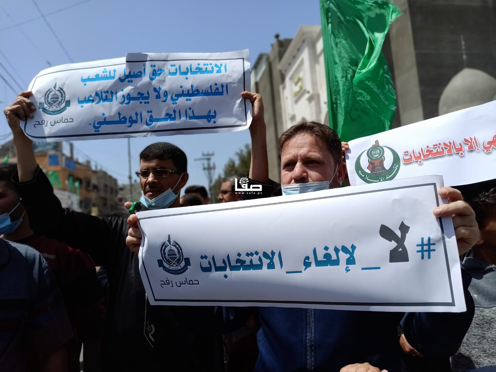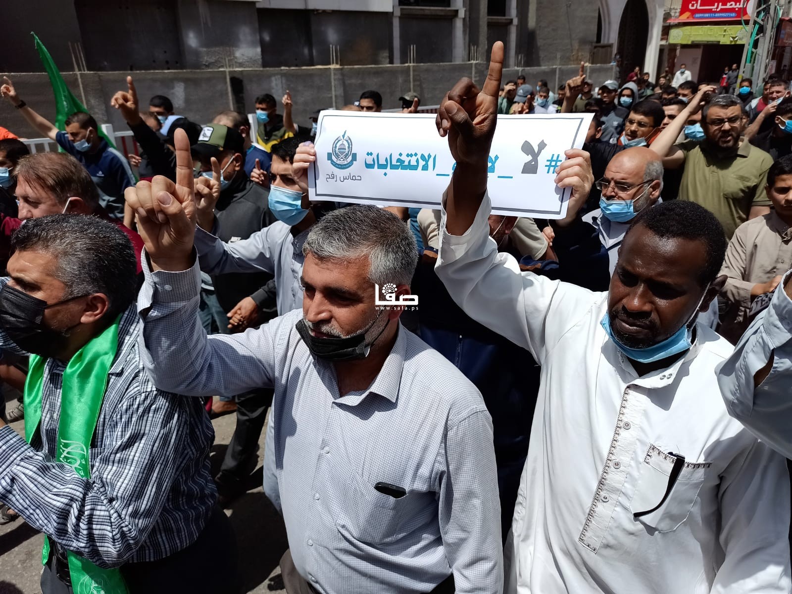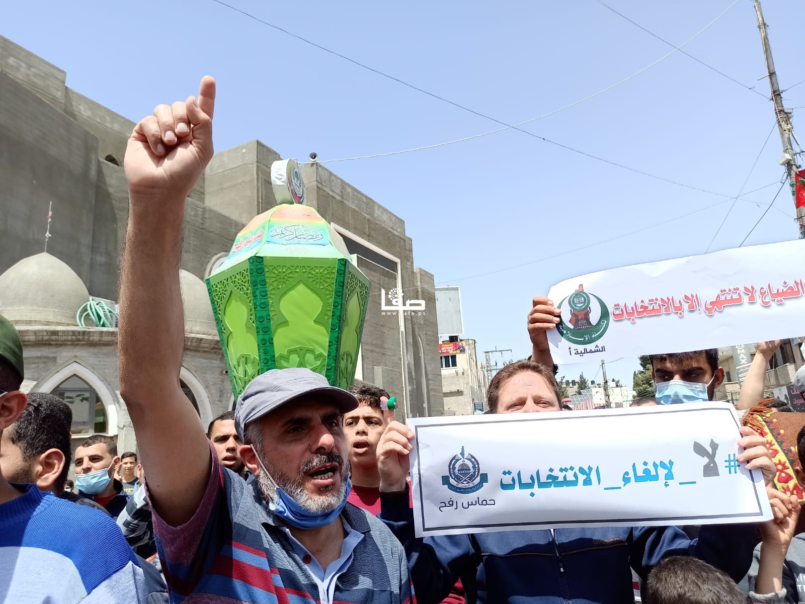 وفي محافظتي رفح وخان يونس؛ شارك المئات في وقفات، رافضة لتعطيل الانتخابات أمام المساجد، وفي الميادين العامة.