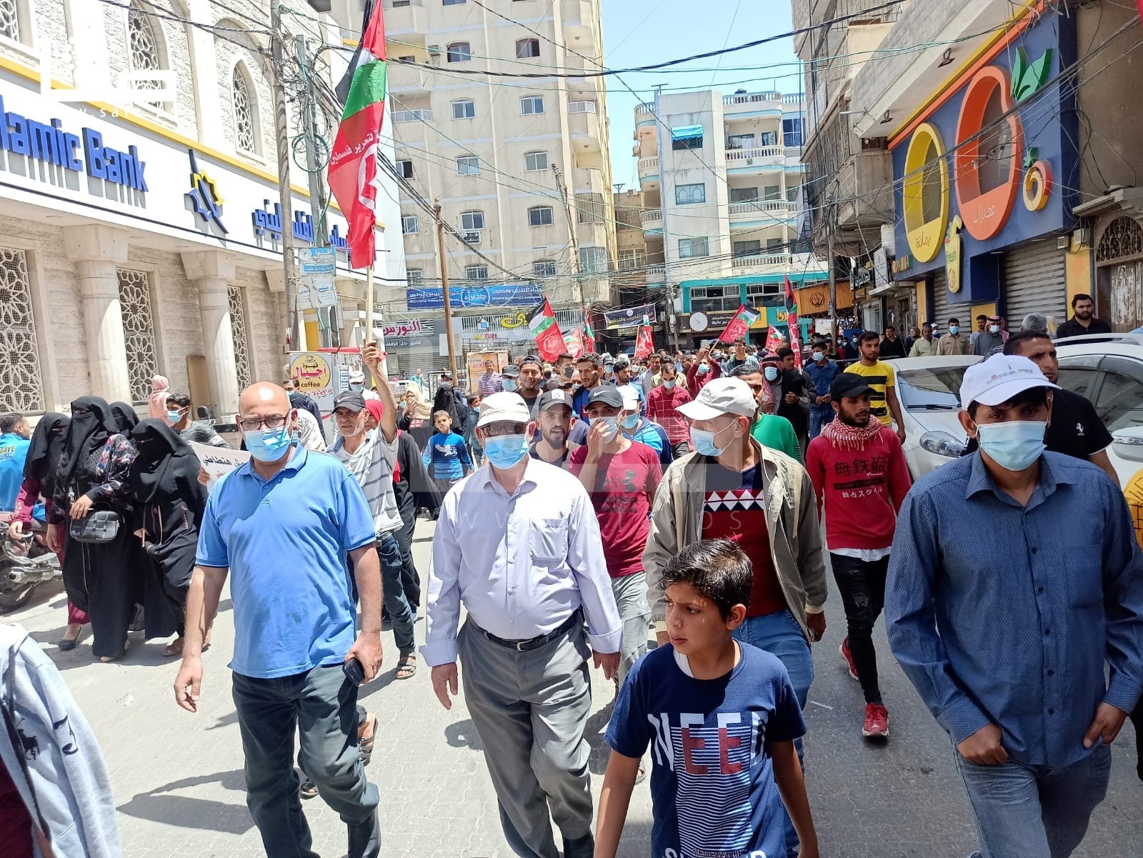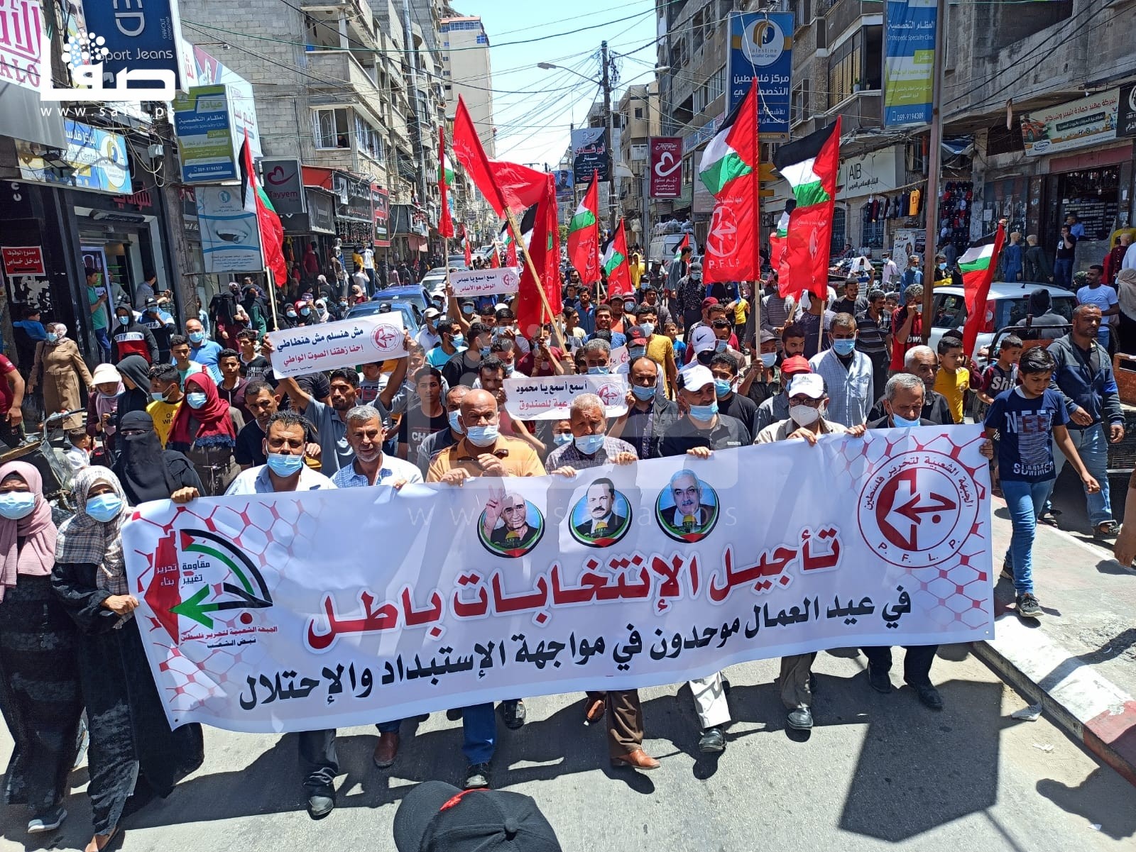 نظمت الجبهة الشعبية لتحرير فلسطين، والمبادرة الوطنية الفلسطينية، ظهر الأحد، مسيرة جماهيرية حاشدة؛ رفضًا لتعطيل الانتخابات الفلسطينية.
