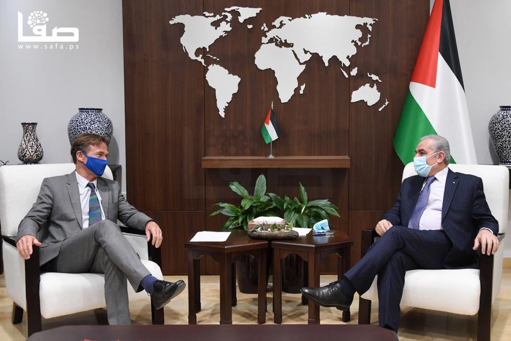وثمن اشتية موقف الاتحاد الاوروبي الداعم لعقد الانتخابات وانجازها في كافة الأراضي الفلسطينية بما فيها "القدس الشرقية"، ولتعزيز قيم العدالة والسلام وإرساء الديمقراطية، ودعم حق الشعب الفلسطيني بالحصول على دولته المستقلة.