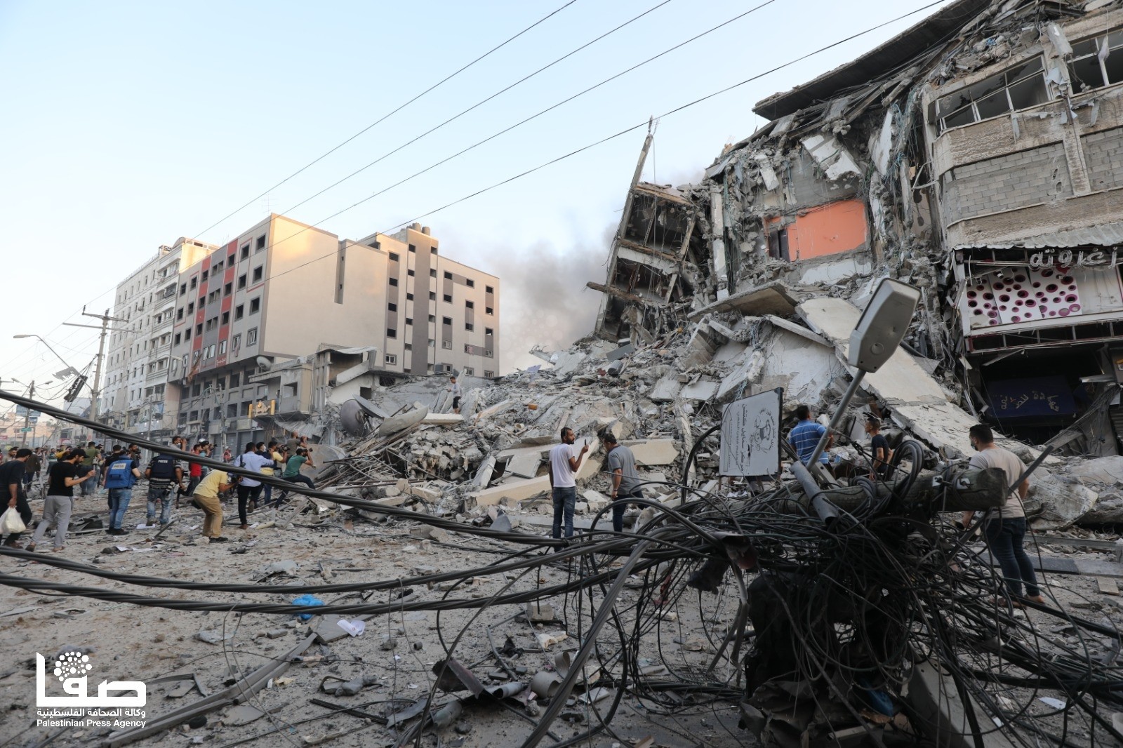 ودمر الطيران الحربي الإسرائيلي ثلاثة أبراج بغزو تضم شققا سكنية ومحال تجارية ومكاتب صحفية ومؤسسات هي الشروق، وهنادي، والجوهرة؛ ما تسبب بن وح عشرات العائلات وخسائر اقتصادية فادحة.