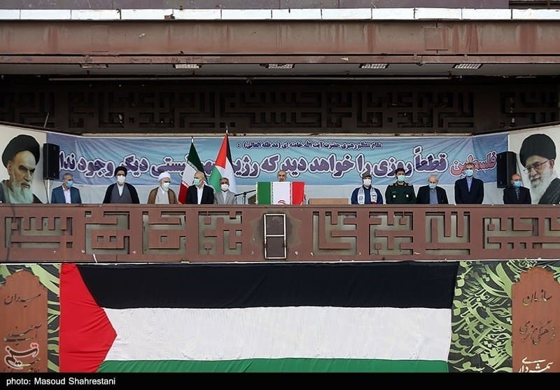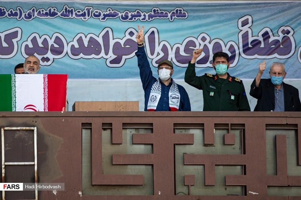 وشارك في المسيرة، قادة الحرس الثوري الإيراني، في مقدمتهم اللواء حسين سلامي القائد العام للحرس، وأيضًا ممثل حركة المقاومة الإسلامية (حماس) في طهران خالد القدومي، والسفير الفلسطيني صلاح الزواوي، وممثل حركة الجهاد الإسلامي ناصر أبو شريف.