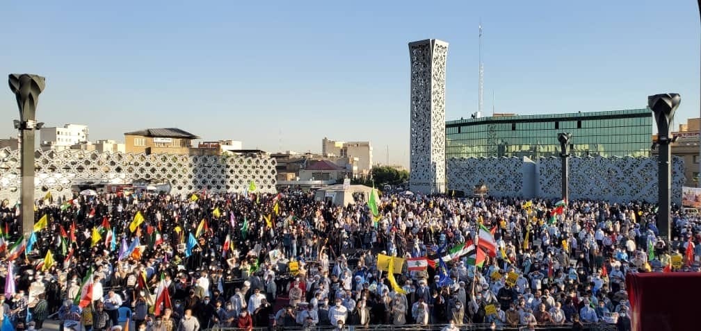 شارك الآلاف من الإيرانيين مساء الأربعاء، في مسيرة جماهيرية كبيرة في ميدان الإمام الحسين رضي الله عنه وسط العاصمة طهران، دعمًا للشعب الفلسطيني في قطاع غزة والقدس والضفة الغربية والأراضي المحتلة عام 48.