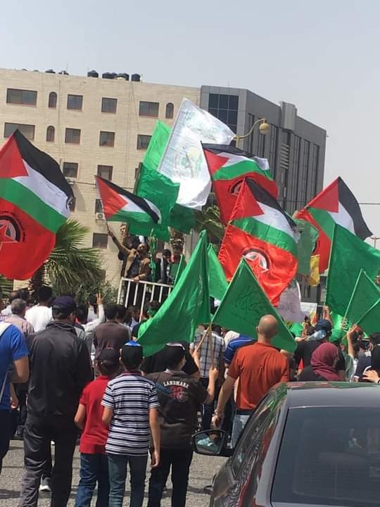 في ذات السياق، انطلقت مسيرة حاشدة من مسجد البيرة الكبير دعت لها حركة حماس ابتهاجا بانتصار المقاومة في غزة، حيث شارك مئات المواطنين في المسيرة التي طافت مركز المدينة وسط هتافات تشيد بأداء المقاومة وردعها للاحتلال.