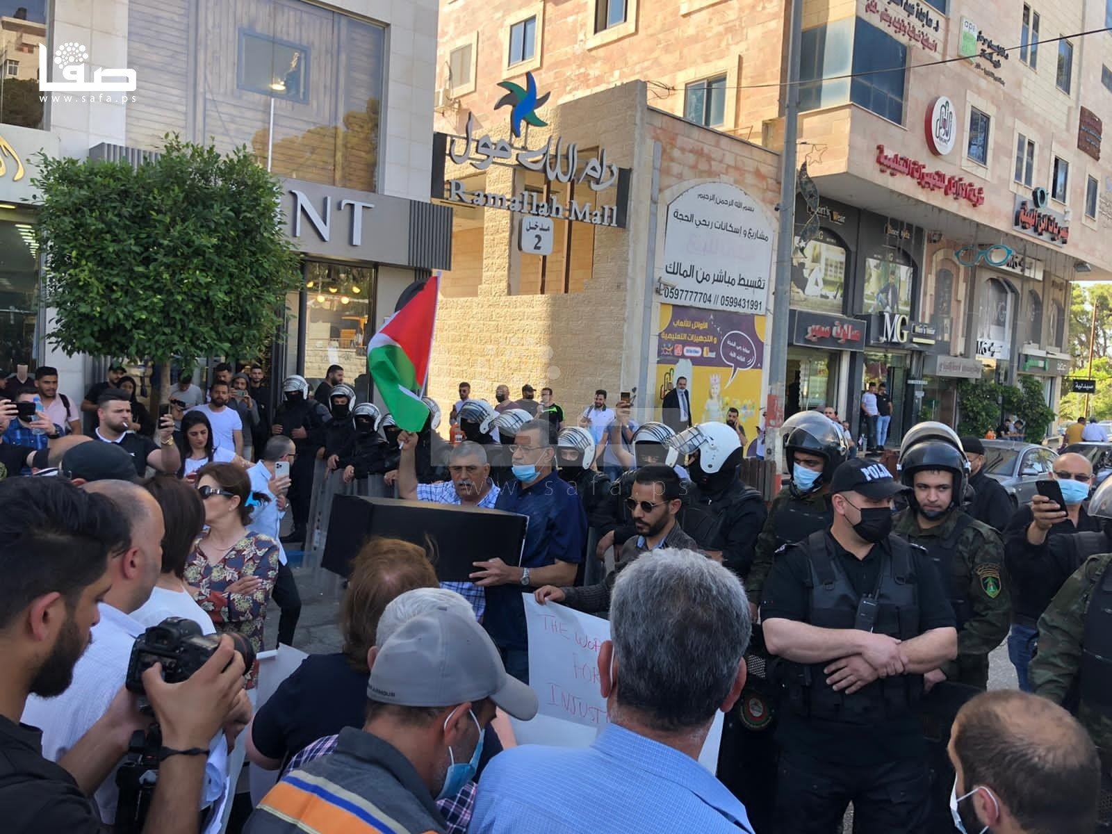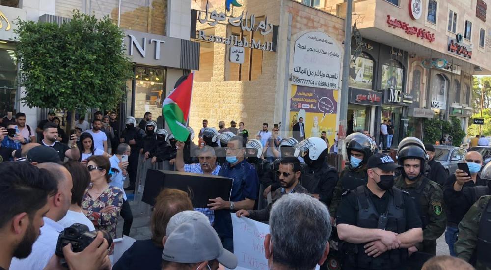 نظم عشرات النشطاء عصر الثلاثاء وقفة احتجاجية وسط مدينة رام الله بالضفة الغربية المحتلة، رفضا لزيارة وزير الخارجية الأمريكي انطوني بلينكين لرام الله.