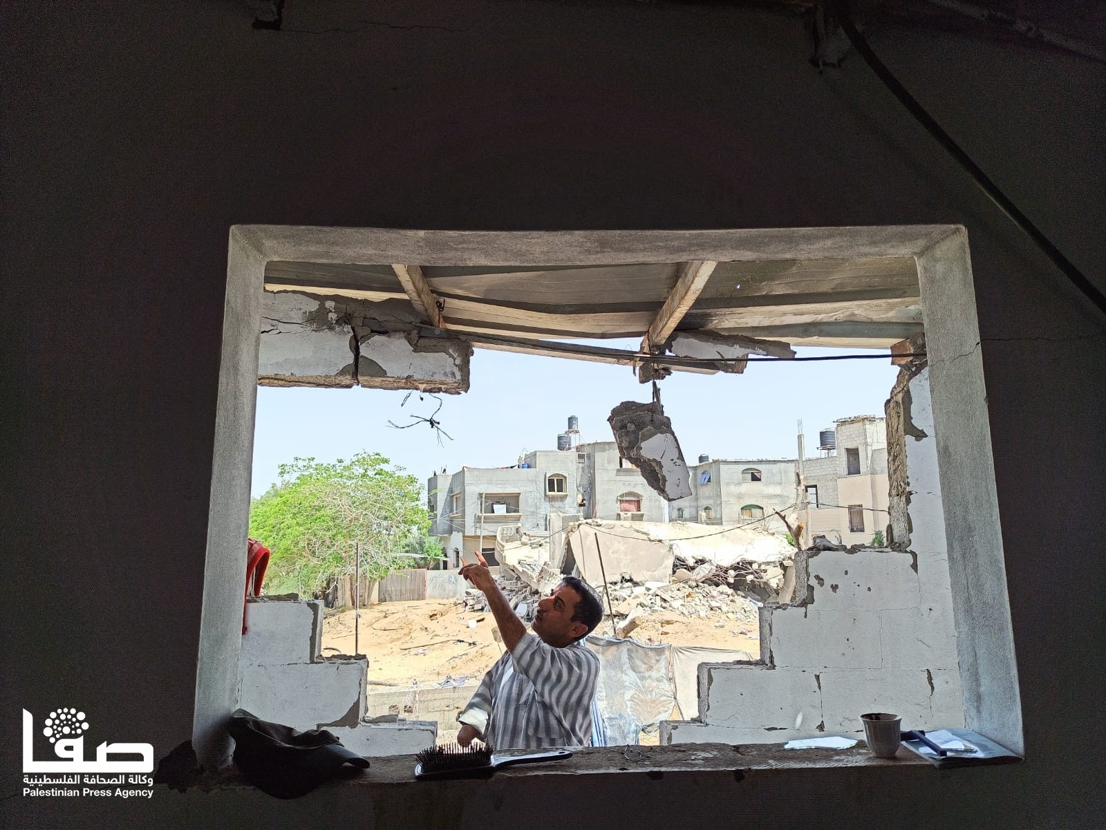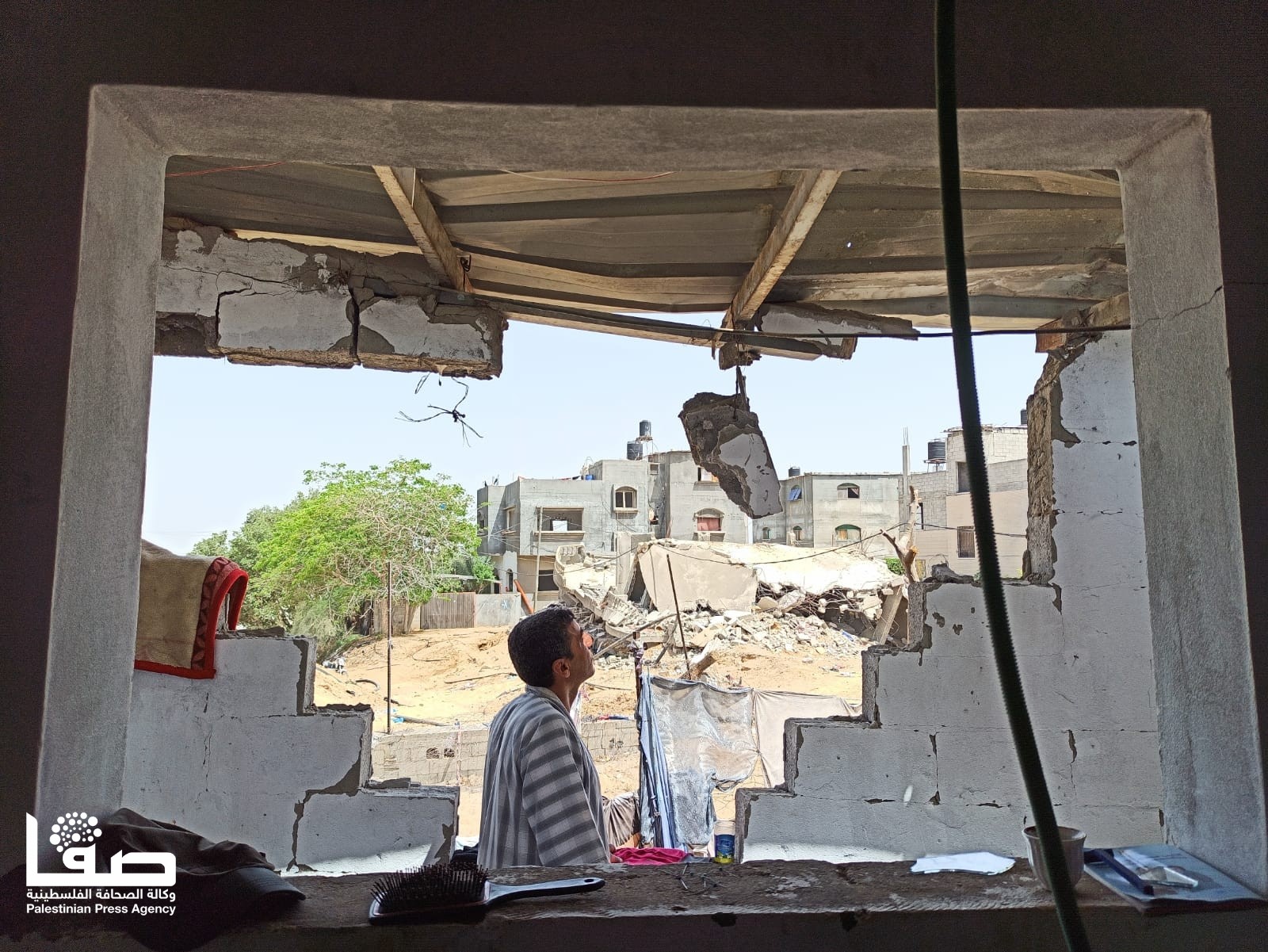ويقول "تلك الليلة (الجنونية) التي كان تاريخها 14 مايو، تعرض محيط منزلي لغارات جوية إسرائيلية عنيفة، وما إنّ بزغت شمس الصباح، توجهت إلى هناك، فوجدت أشبه بزلزال قد ضرب المكان، حفر عميقة، ومنزل جاري من عائلة العطار منهار بالكامل، واستشهدت أسرة بداخله وأصيب آخرين، وبنية تحتية مدمرة، ومنزلي أيل للسقوط، غير صالح للسكن".