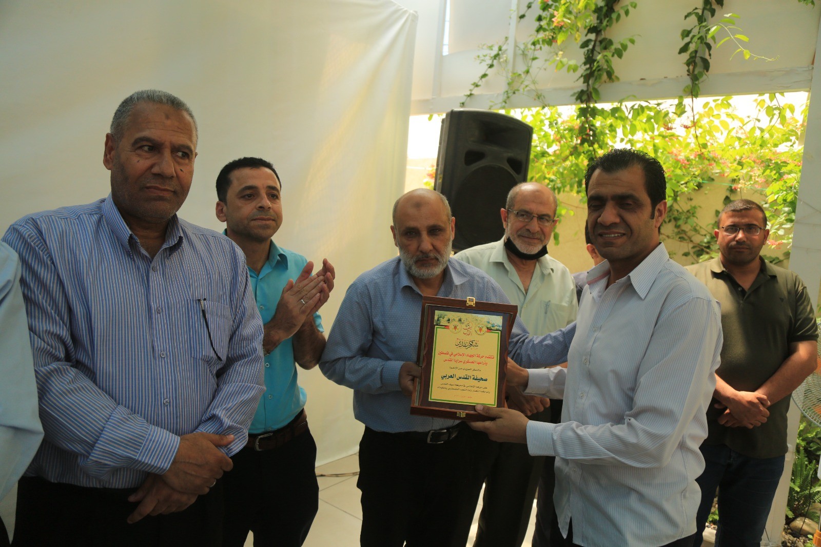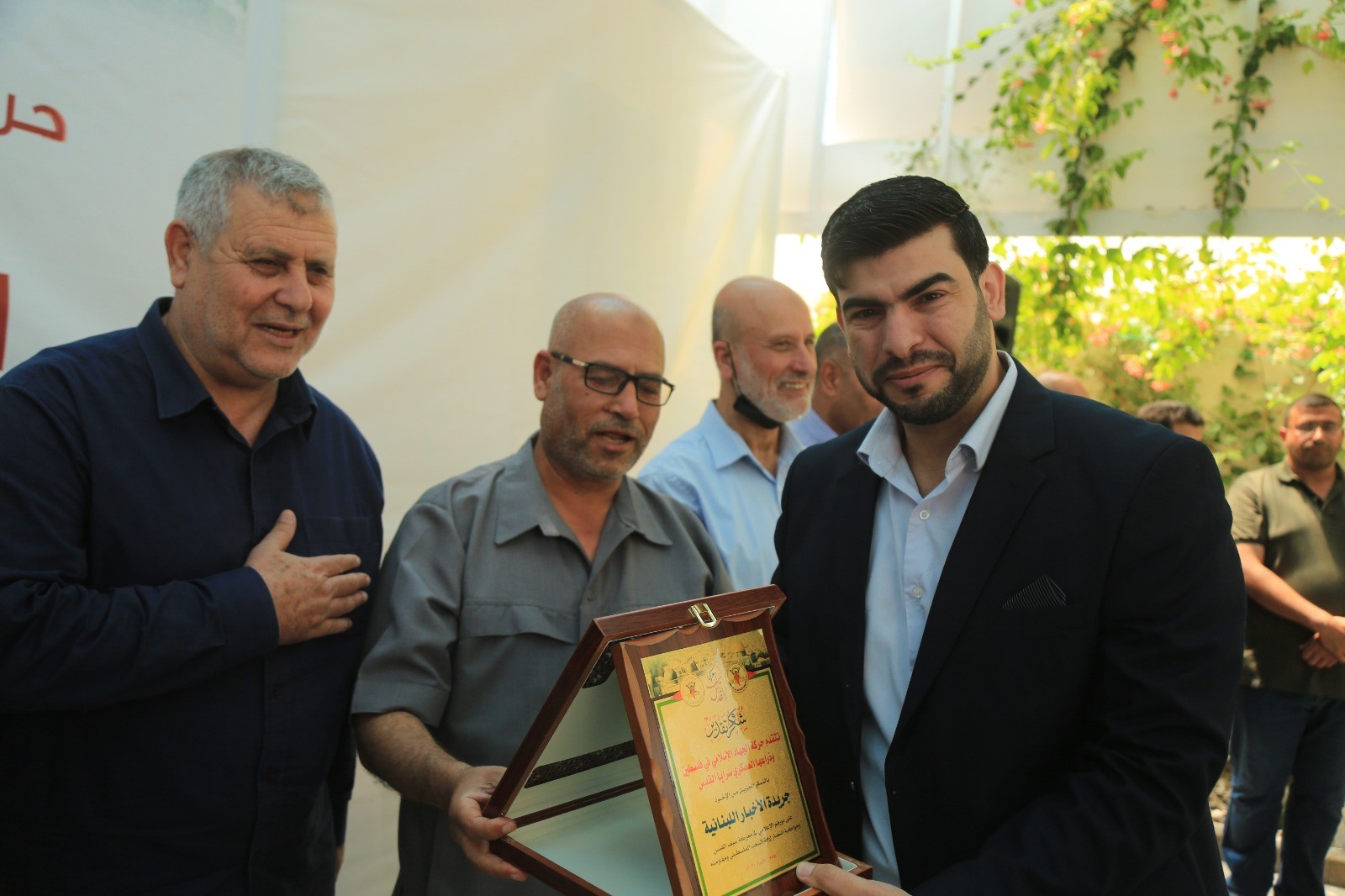 وسلّمت قيادة حركة الجهاد الإسلامي خلال الاحتفال دروعا تذكارية للصحفيين والمؤسسات الإعلامية تقديرا لدورهم في معركة سيف القدس.