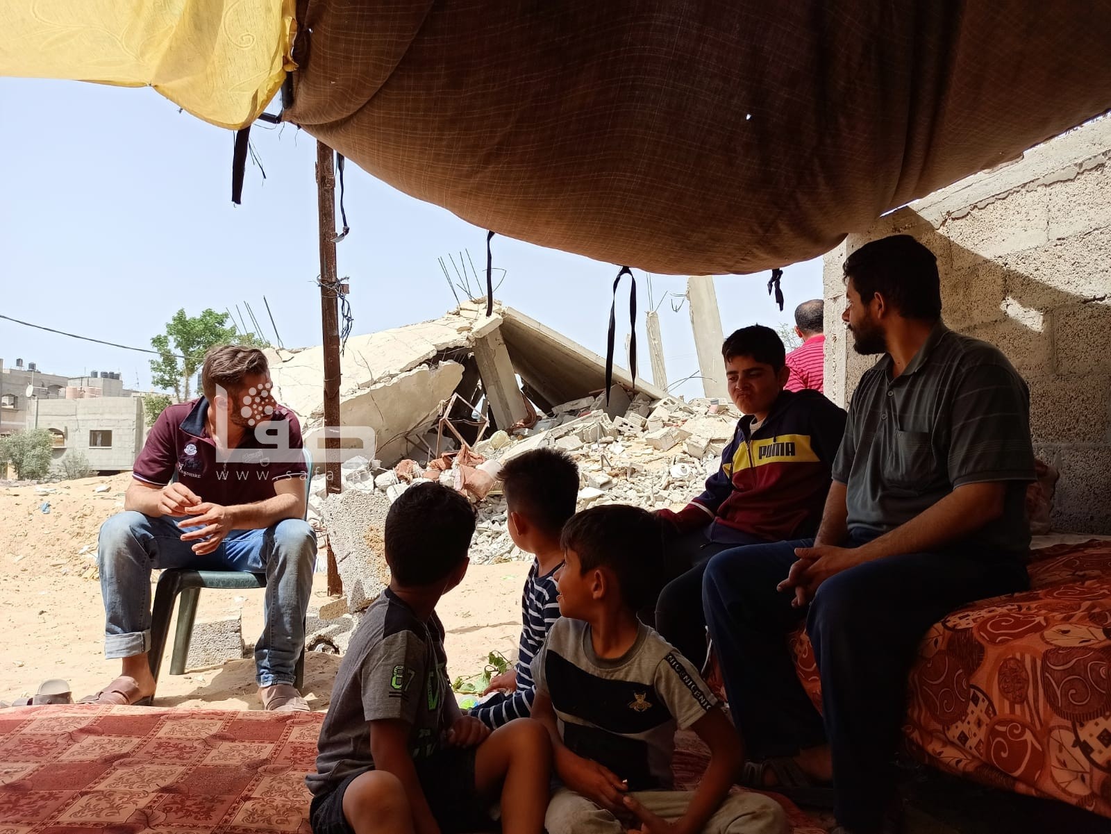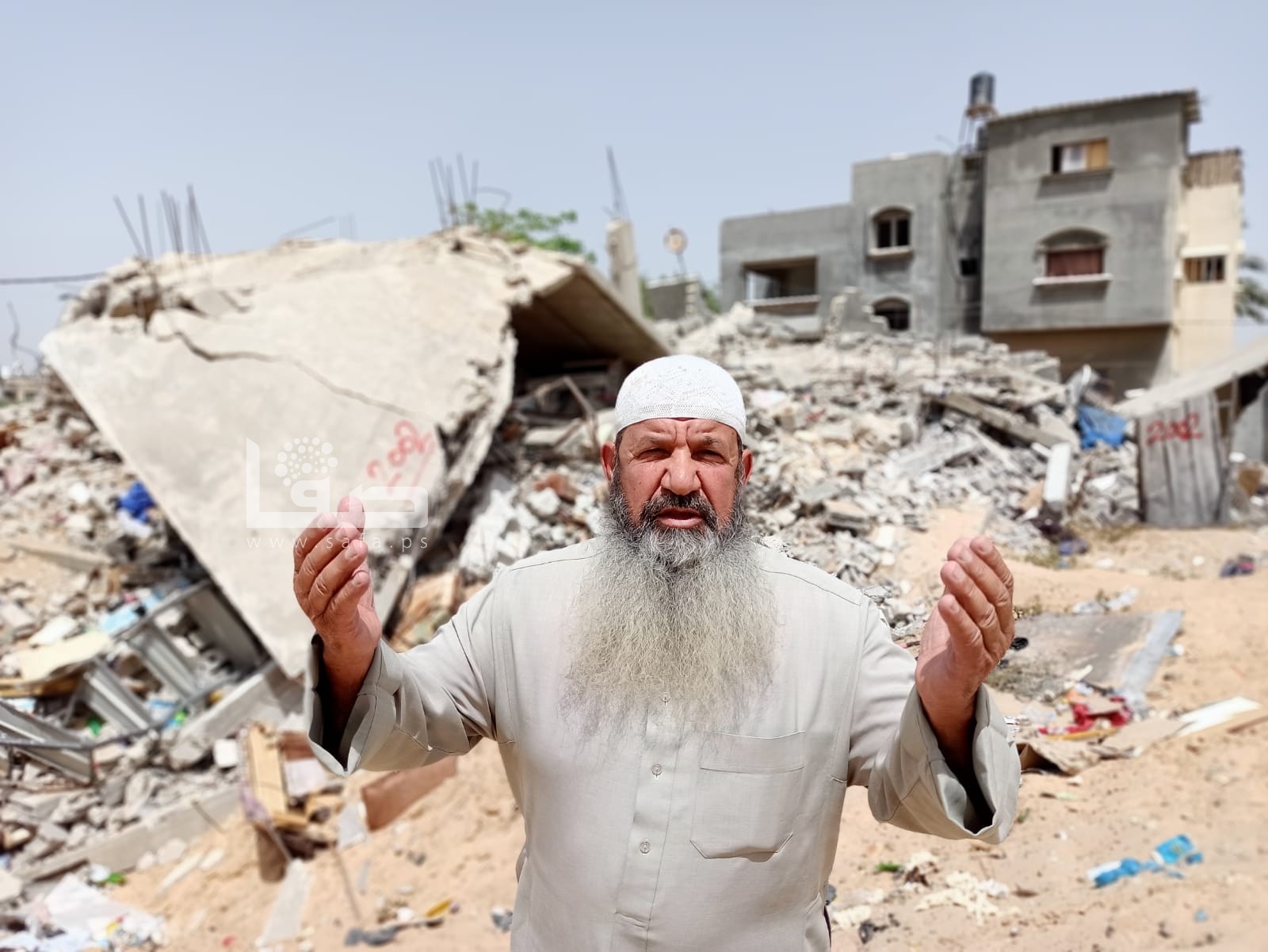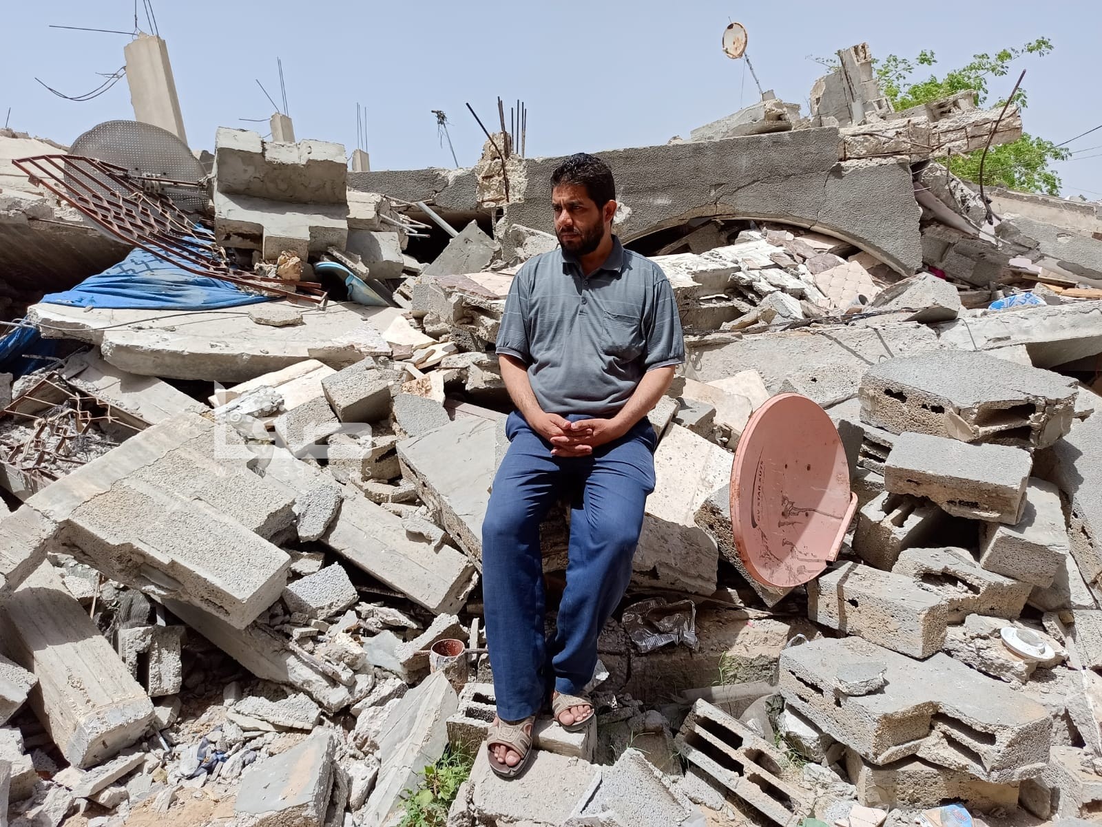 تنهد قليلاً ثم جلس ووضع يده على رأسه فوق الأنقاض وأضاف "قصف المنزل دون سابق إنذار مدنيين عزل مزارعين نعمل نعيش في منطقة نائية أي خطر شكلناه على (إسرائيل) هذا إجرام! أين العالم؟! حرموني أسرتي حرموني أطفالي وفرحتهم بالعيد والمدرسة (..)!".